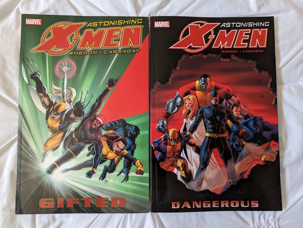 Astonishing X-Men Volumes 1 and 2 by Avengers and Buffy The Vampire Slayer Director Joss Whedon! get it while you can! Dream-team creators Joss Whedon (TV's Buffy the Vampire Slayer) and John Cassaday (Planetary, Captain America) present the explosive, all-new flagship X-Men series - marking a return to classic greatness and the beginning of a brand-new era for the X-Men! Cyclops and Emma Frost re-form the X-Men with the express purpose of "astonishing" the world. But when breaking news regarding the mutant gene unexpectedly hits the airwaves, will it derail their new plans before they even get started?