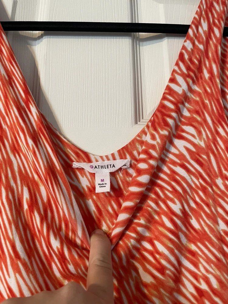 Athleta Starfish Orange Reef Jersey Knit Dress MED Vneck Sleeveless Summer Light. Condition is Pre-owned. Shipped with USPS Ground Advantage.