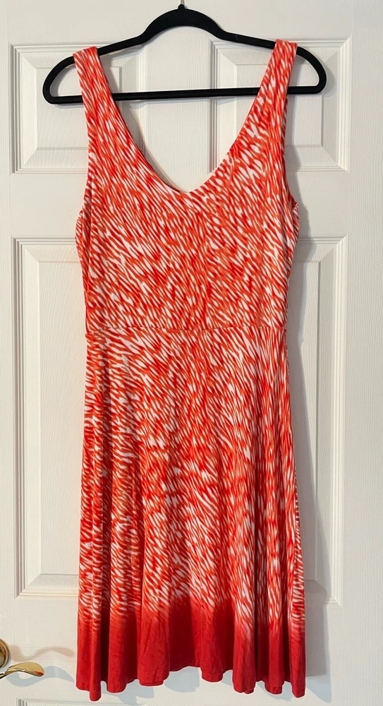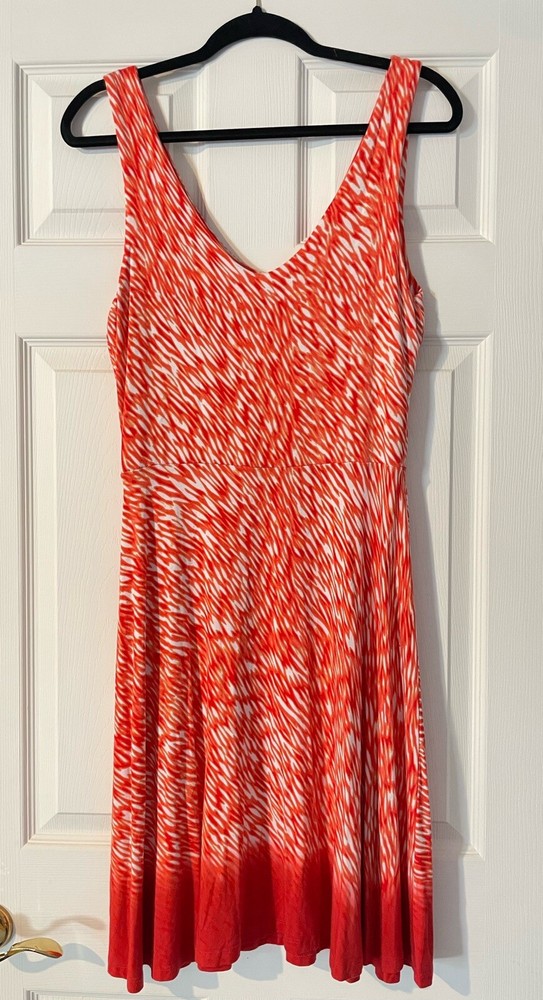 Athleta Starfish Orange Reef Jersey Knit Dress MED Vneck Sleeveless Summer Light. Condition is Pre-owned. Shipped with USPS Ground Advantage....