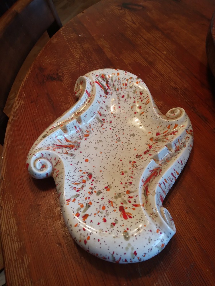 Atlantic Mold Ceramic Ashtray Mid Century Orange/Red/Gray Confetti White Backgr..12" by 9". No chips or cracks. Usps priority mail....