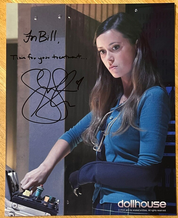 This rare, one-of-a-kind photo of Summer Glau from the hit TV show Dollhouse is a must-have for any true fan. The photo is personally signed by Summer Glau herself and comes with a certificate of authenticity. It's a unique piece of entertainment memorabilia that is perfect for any collection. The photo is in excellent condition and has been stored carefully to ensure its preservation. It's an original piece and is not a reproduction. The photo is personalized and has been signed by Summer Glau, who played the beloved character of Bennett Halverson in Dollhouse. Don't miss out on the chance to own this special piece of TV history. Met Summer at a past Dragoncon convention. I didn’t take any pictures of her signing the photo. Please read below!!! Autographs I am selling are genuine and have been obtained at various conventions or book stores signings I attended. Some autographs may have multiple signatures. Some of the signatures I may not know who they are. That is because at some conventions there may be a group of actors signing. I would have to get the item signed by these unknown celebrities to get to the one celebrity I wanted to really meet. That I may not know who the others are. Let alone recognize their handwriting. If the autograph has been personalized it will be stated in the description. I will try to provide proof of signature but in most cases I never took a picture of the celebrity signing as I wasn’t planning to sell off my autographs. All personalization are to me my birth name William or what my friends call me Bill the seller on eBay. Please inspect all photos and ask questions if need be.