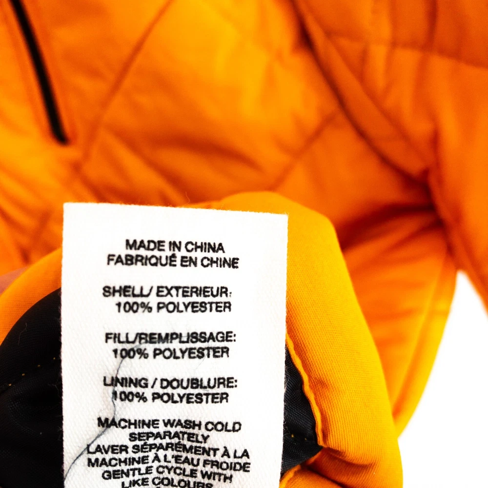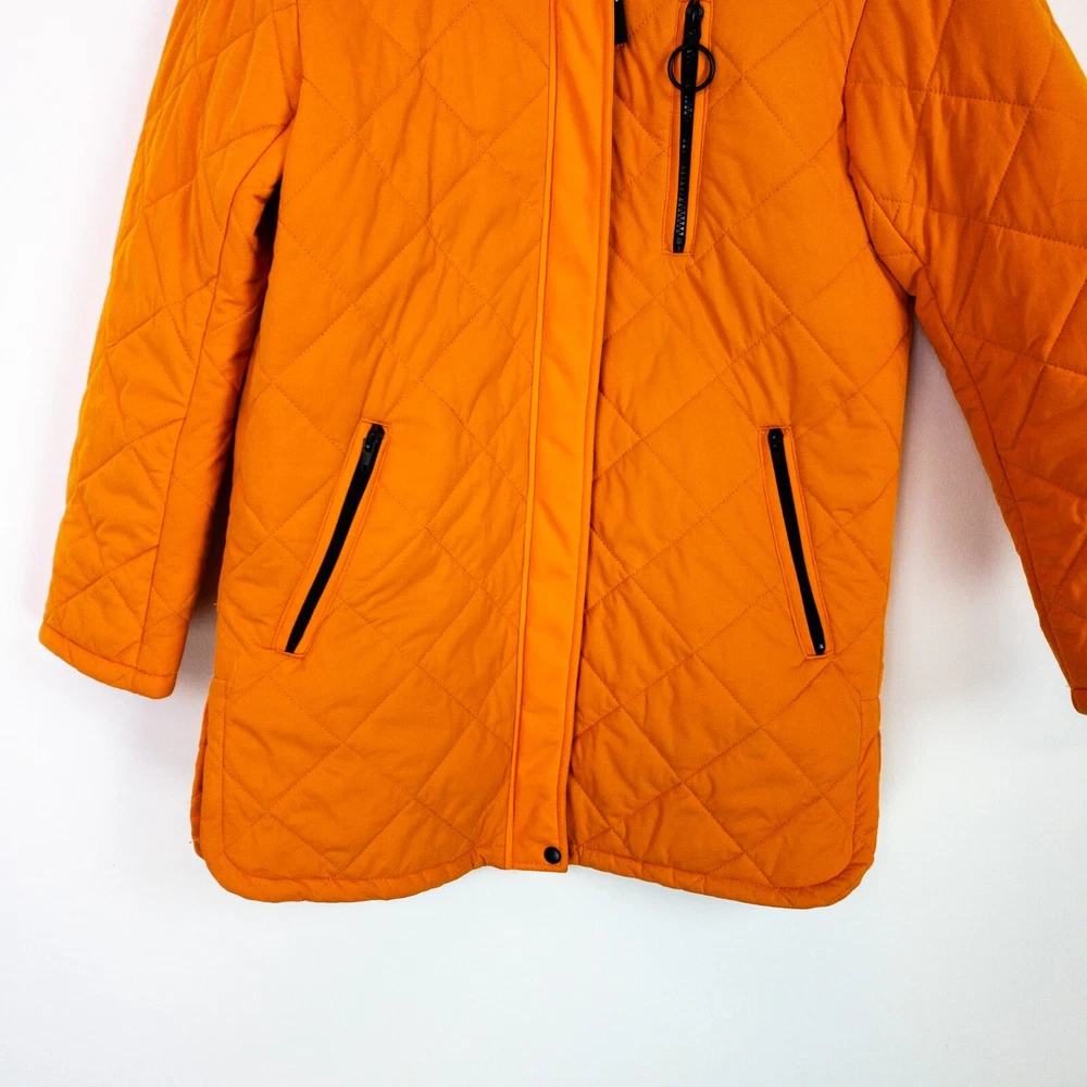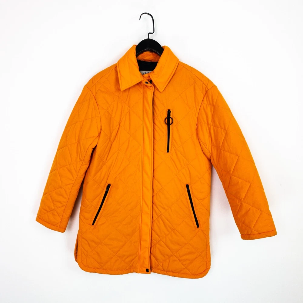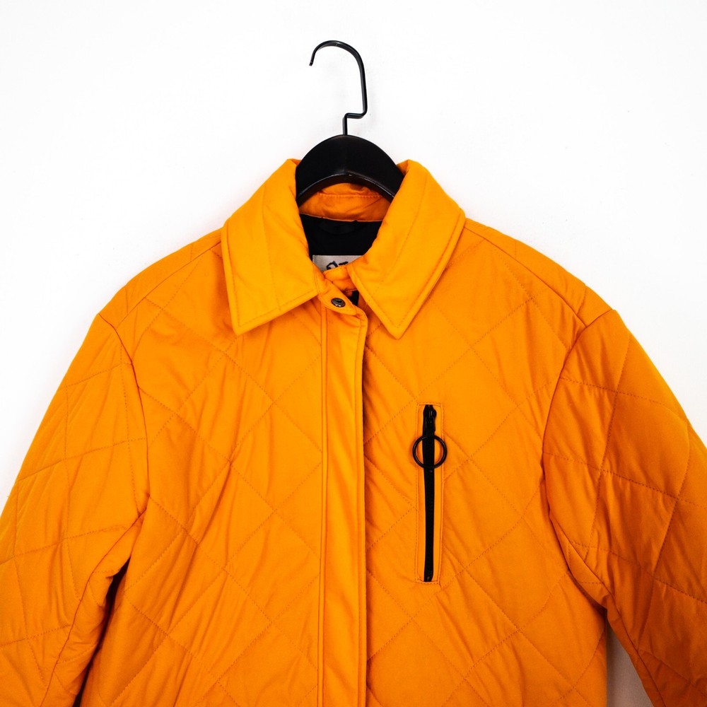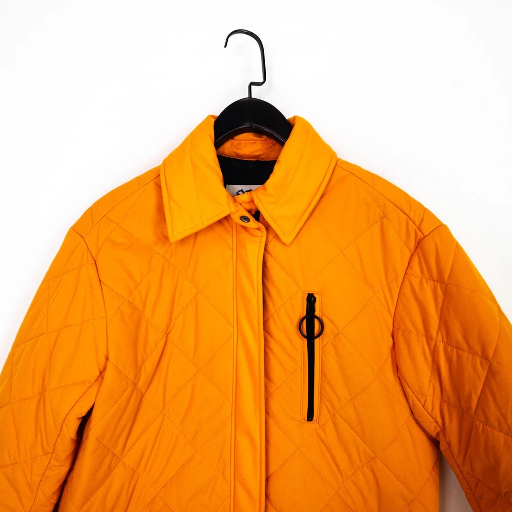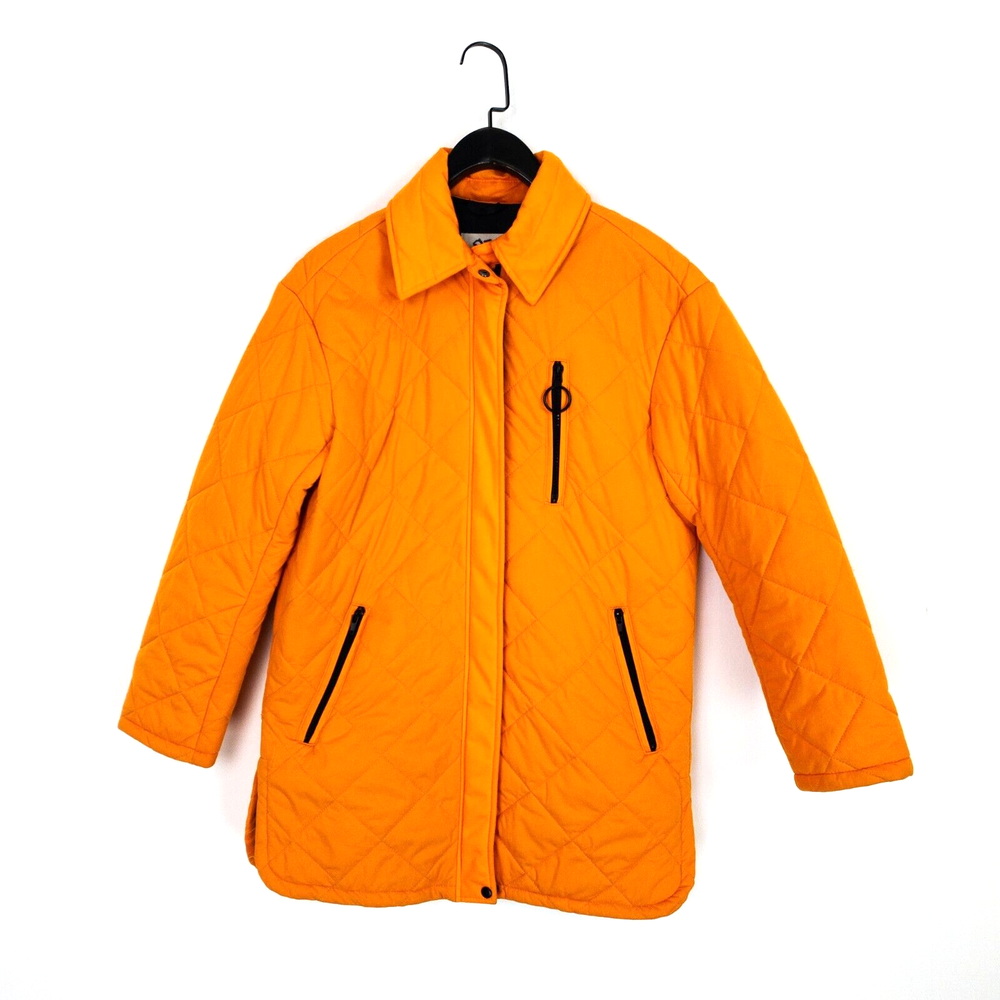 This jacket is a fantastic find! The bright orange color is eye-catching, and the padding keeps me cozy without being bulky. The zip closure is smooth, and the pockets are super handy. Even though it's pre-loved, it looks practically new—great condition for the price. Love that buying it supports a good cause too. Fits true to size, and the length is perfect for layering. Highly recommend!