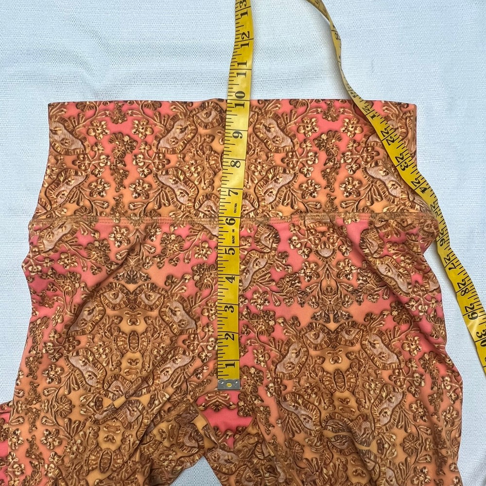 Avocado Leggings All Over Print Orange Pink Medium Mid Rise Full Length. In good used condition. No stains, rips or pilling. Please see pictures for details and measurements for a more accurate fit. Measurements are estimated. I offer Combine shipping. Thank you 😊