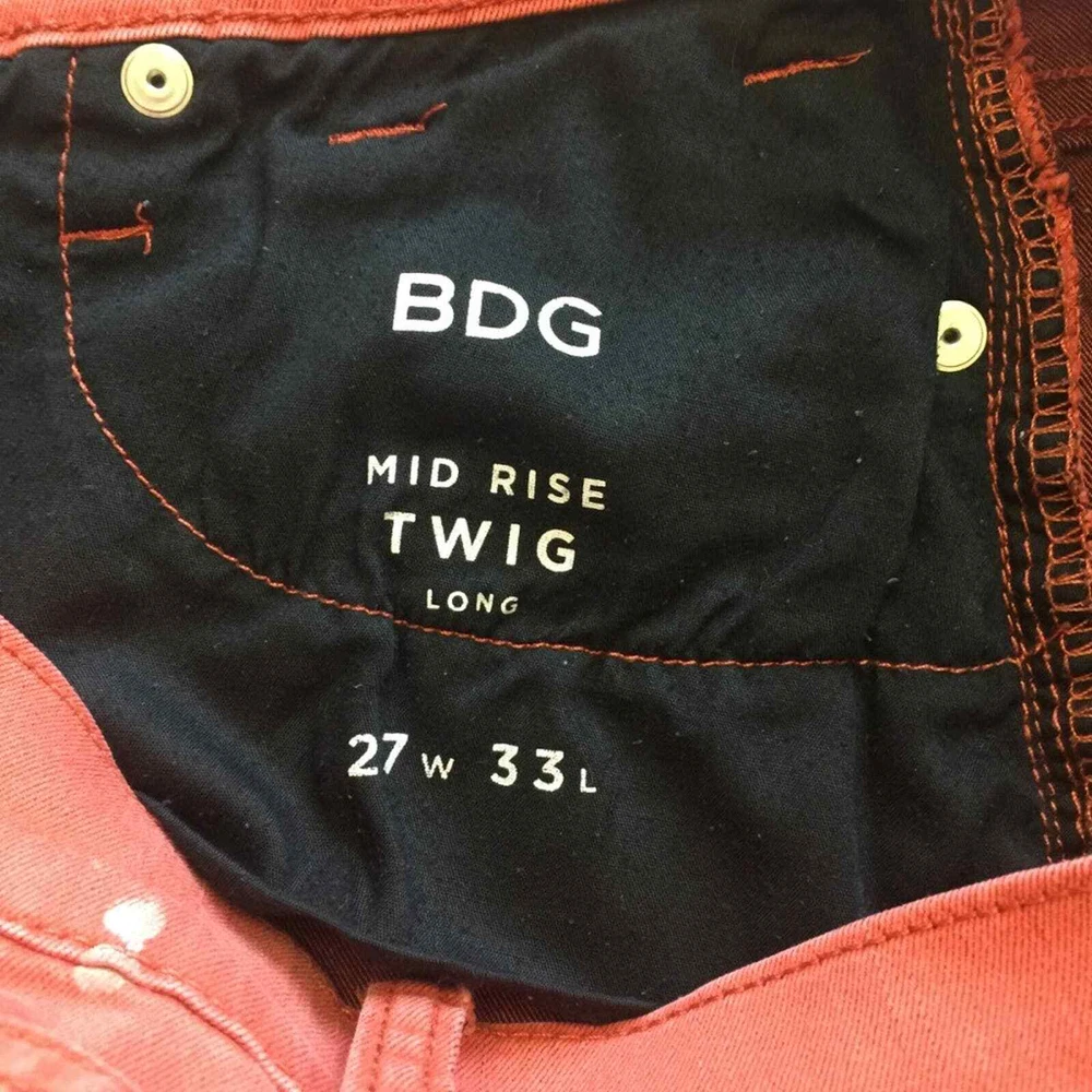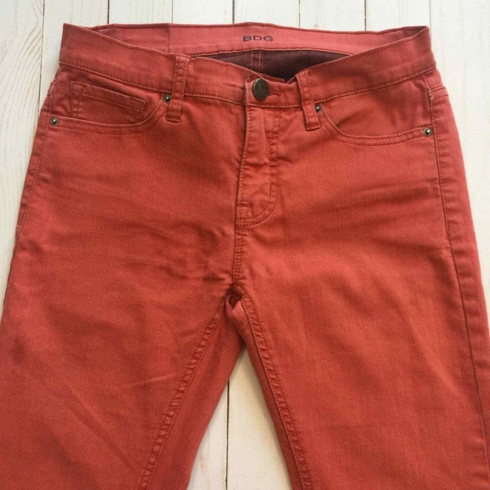 <![CDATA[<div>Classic skinny twig jean in a modern burnt orange, exclusively available at UO by BDG. In a mid-rise, cropped ankle silhouette with added stretch for the slimmest fit. Excellent pre-owned condition (with the exception of a white spot on the waistband). 74% cotton | 24% polyester | 2% spandex Machine wash cold Tumble dry low Approximate measurements (flat lay): waist: 14" rise: 8.5" inseam: 32.5"