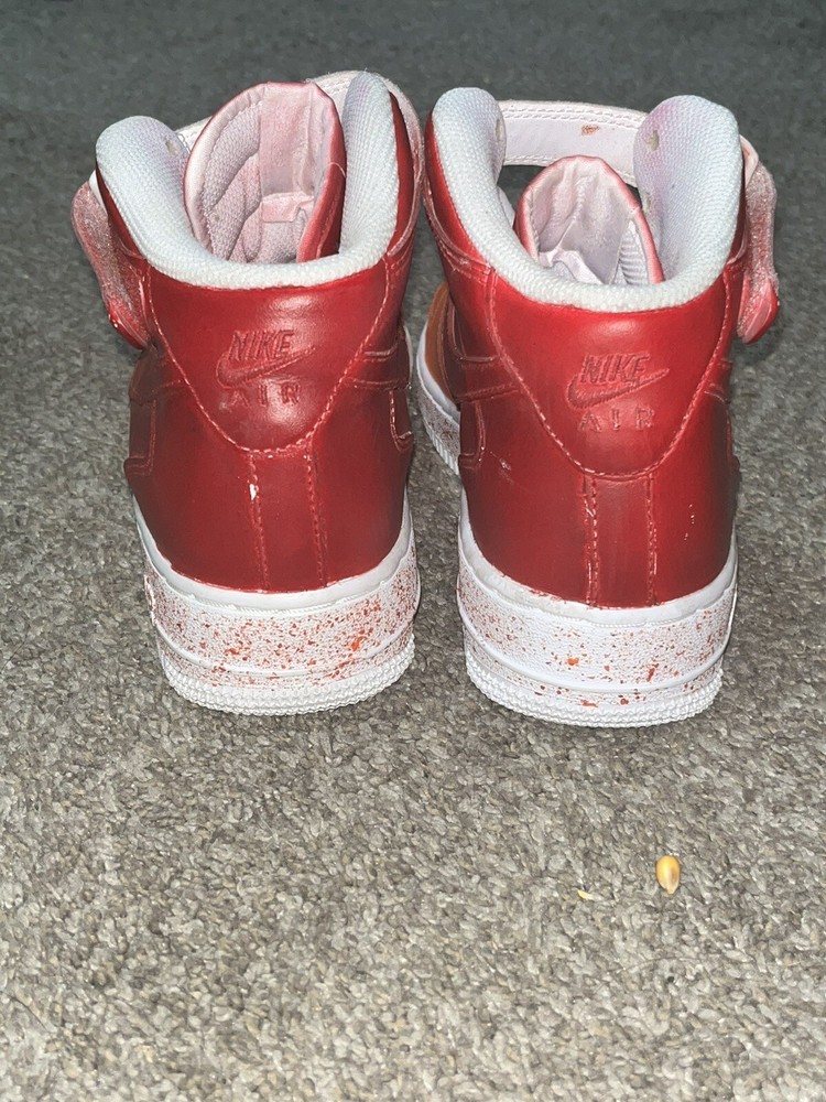 New, Gently Worn, No Odor; No Box, As Is. Purchase May ‘23 for $125 + custom painted for and additional $50. Only worn once. Velcro straps may need a solution, minor paint damage on inner velcro. I had them custom painted for a party & my son forgot about them. Description from Nike, as follows: Genuine, synthetic leather upper provides premium durability and structure Padded mid-cut profile provides comfortbale support Perforated forefoot increases airflow Tonal design with classic Swoosh logo Lace panel and adjustable hook-and-loop strap locks the fit Padded midsole and hidden Air-Sole unit wraps feet in plush, lightweight cushioned comfort Grippy rubber cupsole construction offers durable traction The Nike Air Force 1 MId Casual Shoes are imported. Taking an iconic sneaker and reimaging it into a modern-loved mid profile, the Big Kids' Nike Air Force 1 MId Casual Shoes is dressed in a tonal mixed-leather upper for a fresh look. Pulling in signature details, like the Air-Sole unit, it'll have your youngster dressed in classic comfort.