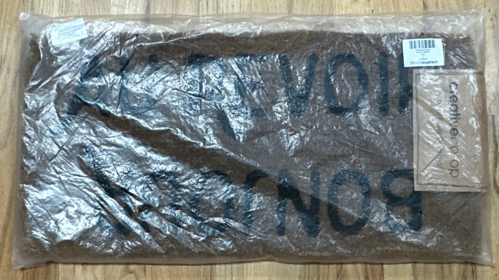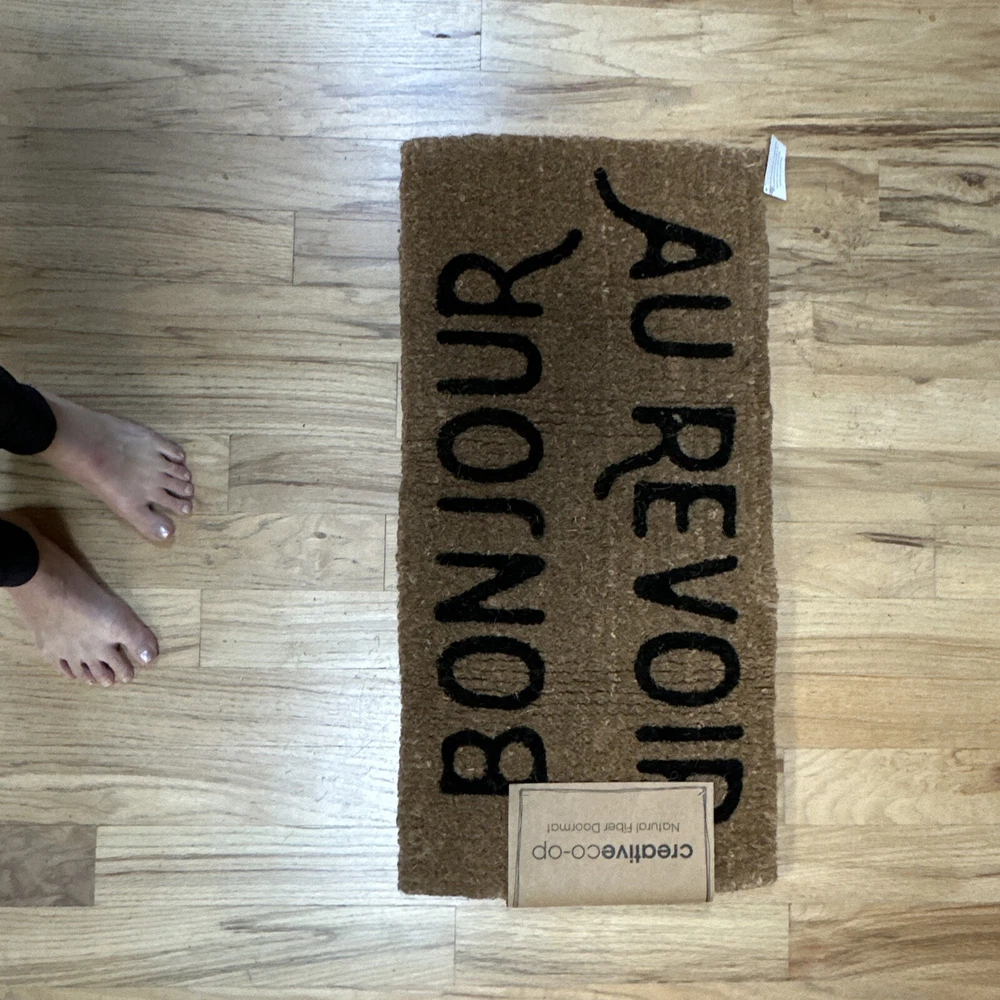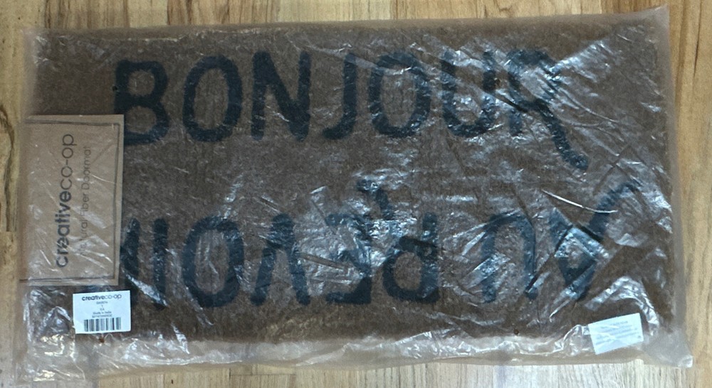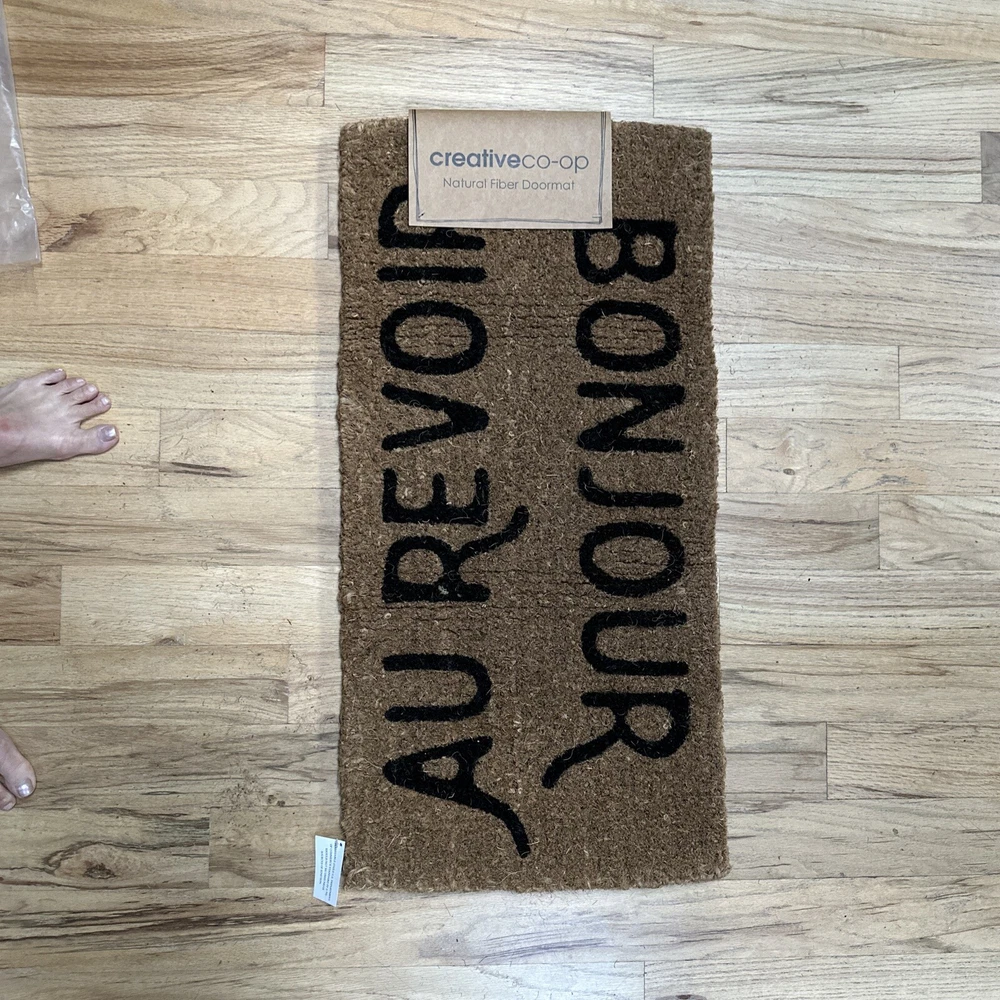 New in package Creative co-op door mat Bonjour & Au revoir Hello & goodbye coming and going Made with natural fibers 32" x 16"