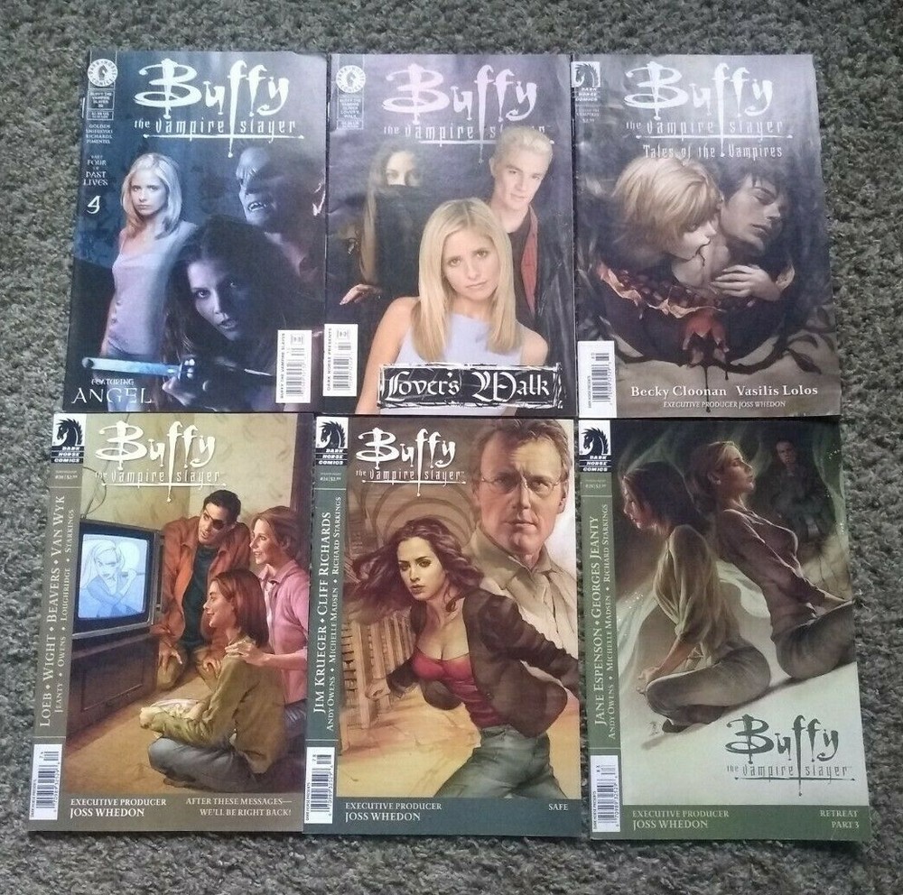 6 GREAT BUFFY THE VAMPIRE SLAYER COMIC BOOKS 1. SEASON 8 #20 2. SEASON 8 #24 3. SEASON 8 #28 4. SEASON 8 TALES OF THE VAMPIRES 5. LOVER'S WALK 6. #30 PAST LIVES ALL BOOKS ARE IN GOOD SHAPE, WITH MINOR WEAR SEE PICTURES FOR A BETTER LOOK