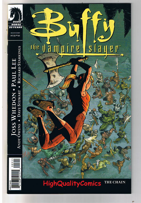 BUFFY the VAMPIRE SLAYER #5, Variant, NM+, Joss Whendon, 2007,more BtVS in store BUFFY the VAMPIRE SLAYER #5...(Variant)... Name of Comic(s)/Title?: BUFFY the VAMPIRE SLAYER #5...(Variant).... Publisher: Dark Horse Comics.... Art by/Featuring/Stories?: Featuring an issue of the BUFFY the VAMPIRE SLAYER comic.....Artist(s): Paul Lee...Writer(s): Joss Whedon...Cover art by : Paul Lee....Rated : PG13+ to Mature Reader....Story(s): "The Chain" ... Grade of item? : This issue is in NEAR MINT+ (unread) condition.... Created when? : 2007.. Front Cover description : As new, with very slight handling wear (if any)... Back Cover description : As new... Page quality description : Brand new... Tape or writing?: No... How are staples?: Staples are secure.... Flat & supple : Yes.... Don't get caught napping...Will come bagged & boarded... 1st Printing!!... ...See more BUFFY, VAMPIRE, GOOD GIRL / FEMME FATALE, VARIANT, & MOVIE/TV items in our store. : Here! Be sure to check out all of our current on-going auctions! Lots of great product at affordable prices! Bookmark our listings with (control + D). Lots more coming in the next few weeks... Check out the scan(s). If you like this? Our store name is HighQualityComics...aka HQComics... We have been doing mail-order since 1988. We guarantee Absolute Satisfaction on All Orders! Shipping in a box. Combine auctions to save on postage. INTERNATIONAL CUSTOMERS : Email us for international shipping rates & acceptable ways to pay. INTERNATIONAL CUSTOMERS : Email us for acceptable ways to pay and shipping options, before you place an order. Thanks! This listing created with GLETech Multiple Selling Channel tools.