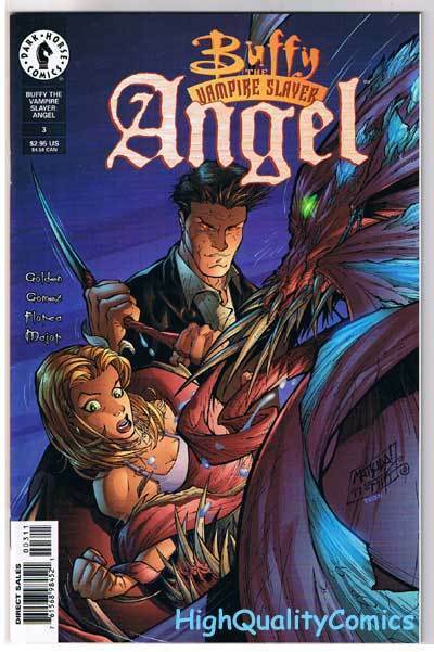 BUFFY the VAMPIRE SLAYER ANGEL #3, NM-, Joss Whedon, 1999, more BtVS in store BUFFY the VAMPIRE SLAYER : ANGEL #3... Name of Comic(s)/Title?: BUFFY the VAMPIRE SLAYER : ANGEL #2.... Publisher: Dark Horse Comics........... Art by/Featuring/Stories?: Featuring an issue of the BUFFY the VAMPIRE SLAYER comic...Artist(s): Hector Gomez, Florea...Writer(s): Christopher Golden...Cover art by : Jeff Matsuda....Rated : PG13+ to Mature Reader....Story(s): "Angel" .....Buffy created by Josh Whedon...... Grade of item? : This issue is in NEAR MINT- condition...... Created when? : 1999... Front Cover description : As new, with light handling wear... Back Cover description : As new... Page quality description : As new... Tape or writing?: No... How are staples?: Staples are secure.... Flat & supple : Yes.... Don't get caught napping...Will come bagged & boarded... ...1st printing...... ...Lots more BUFFY, VAMPIRE, MOVIE/TV, & GOOD GIRL / FEMME FATALE items in our store. : Here! Be sure to check out all of our current on-going auctions!! Lots of great product at affordable prices!!! Bookmark our listings with (control + D). Lots more coming in the next few weeks!!!! Check out the scan(s). If you like this? Our store name is HighQualityComics...aka HQComics... We have been doing mail-order since 1988. We guarantee Absolute Satisfaction on All Orders! Shipping in a box. Combine auctions to save on postage. INTERNATIONAL CUSTOMERS : Email us for international shipping rates & acceptable ways to pay. INTERNATIONAL CUSTOMERS : Email us for acceptable ways to pay and shipping options, before you place an order. Thanks! This listing created with GLETech Multiple Selling Channel tools.