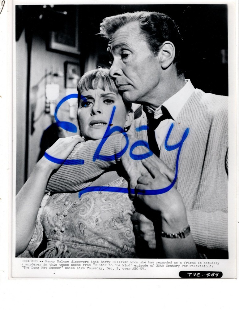 Black and White Publicity Photo, 1965-66, "THE LOG HOT SUMMER" UNMASKED -- Nancy Malone discovers that Barry Sullivan whom she regarded as a friend is actually a murderer in this tense scene from "Hunter to the Wind" episode of 20th Century-Fox Television's "The Long Hot Summer" which airs Thursdays, Dec. 2, over ABC-TV. Photo # TVC-454 The Long Hot Summer is an American drama series from 20th Century Fox Television that was broadcast on ABC-TV for one season from 1965–1966. It was aired in the UK on ITV. The series was set in the Deep South community of Frenchman's Bend, Mississippi. The community was dominated and owned by the town's wealthy, powerful (and deceitful) bank owner "Boss" Will Varner (Edmond O'Brien). A widower with two grown children who also owned other businesses besides the town's bank, the unscrupulous Varner ran the town and its citizens with an iron fist and nobody dared to question him. He and his family lived in the largest mansion in Frenchman's Bend. However, problems arose in Varner's orderly world when Ben Quick (Roy Thinnes), a young man whose father Varner destroyed some years prior, returns to town after thirteen years away to reclaim his family's farm and to challenge Varner's absolute authority over the town and its people. Ben's aim was to settle the score against the wicked Varner in the fight his father ran from. Supporting characters include Clara and Jody Varner; Jody was Will's weak-willed and immature, but more honest son and Clara was Will's sensitive and sensible but deeply troubled older daughter who was considered to be the lady of the house (in lieu of her late mother). To her father's dismay, she liked Ben; Minnie Littlejohn, the town's hotel owner who is a good friend to many in town and was also the mistress of Will Varner; and Eula Johnson, a 17-year-old girl who becomes a central point in wealthy Jody Varner's life after he picks her up during a rain storm and defends her from her brother and fiance. (In the movie, Eula was married to Jody Varner; but in the TV series, she was merely a friend of Jody's.) Also seen occasionally was Andrew, the Varner family's butler/chauffeur; Sheriff Harve Anders, the local sheriff for the county in which Frenchman's Bend is located; Judge Armistid, the community's judge; and Dr. Aaron Clark, the Varner family's physician Circa 1960’s, Amer ican Television Series, Black and White Studio Publicity Photos were a big hit among fans of the shows. Our collection of photos are being offered for sale individually. We do combine shipping, and up to 10 photos will ship for the same price. Photos are shipped flat in cardboard protective large manila envelopes, first class US Mail. To receive combined shipping to not pay until an invoice has been sent, Thank you. As eBay requires and we also strongly suggest. . . please look at each photo carefully, as you are the deciding factor and final judge. Pictures provided are of the actual item, photographed in HD. We make every effort based on the information available to us, to provide the buyer with as complete and accurate description and as much information as possible about each listing. If you have any questions please ask. Thank you