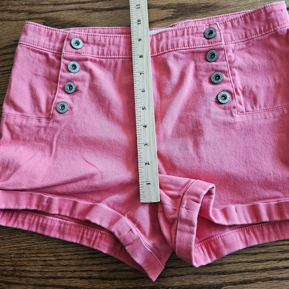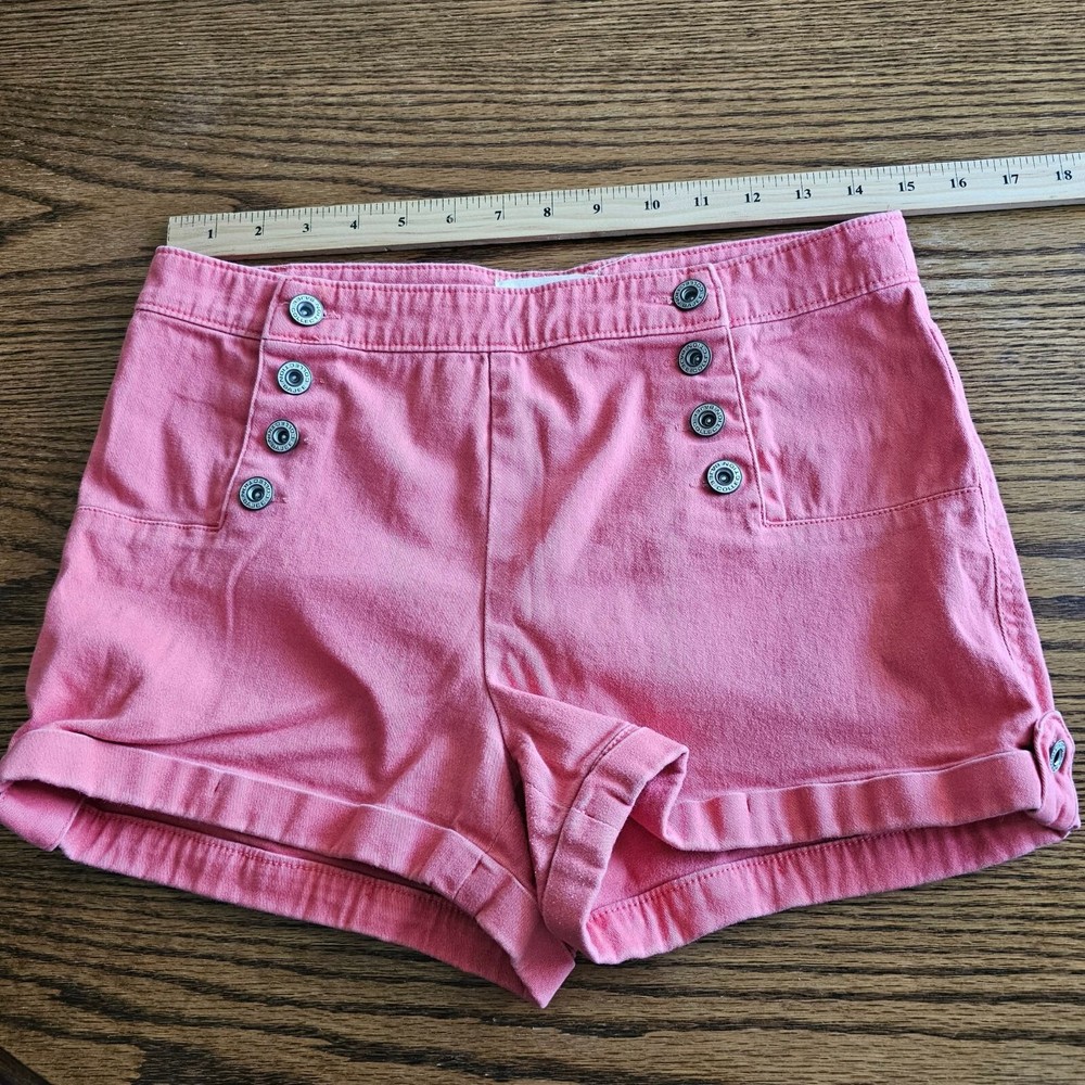 Bajee Coral Orange Sailor Jean Shorts Women's Large Mid Rise Cotton Spandex Measurements in photos Please reach out with any questions B2824