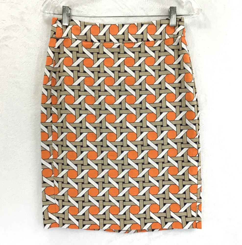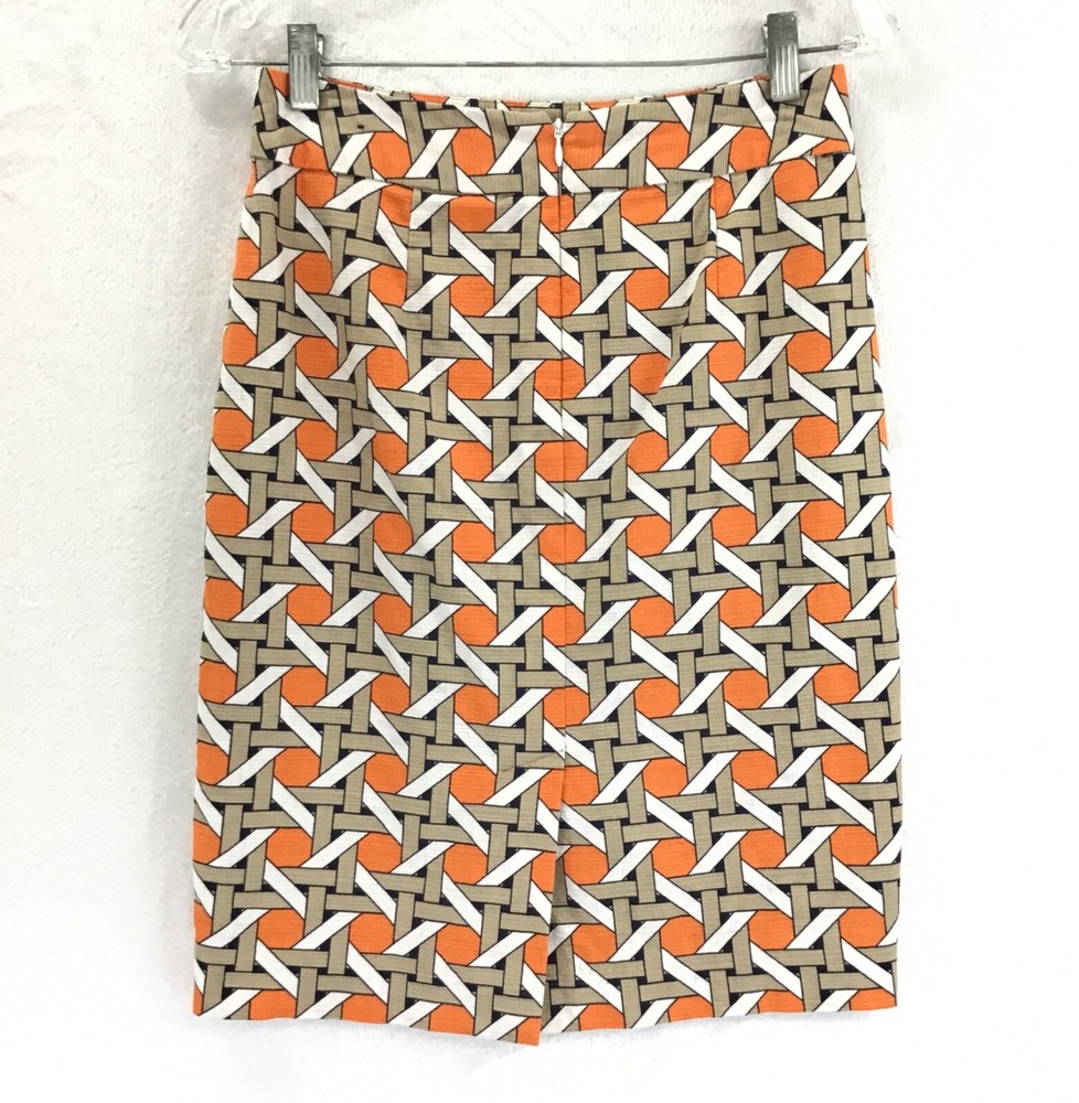 Thank-You SO MUCH For Supporting Small Business =) Banana Republic Factory Lined Pencil Straight Skirt / Back Zip / Back Slit "Lattice" Design Shell: 98% Cotton 2% Spandex / Lining: 100% Polyester Waist is About 27" / Length of Back is About 21.5" Color: Orange / Light Brown / Ivory Women's Size: 0 Item #: I-00177 Top USA Seller / FAST SHIPPING! / I Absolutely LOVE My Customers, Please Check-Out My Feedback =) Preowned / Please See all Photos For More Info Proudly, Quickly & Carefully Shipped From Alabama, USA =)