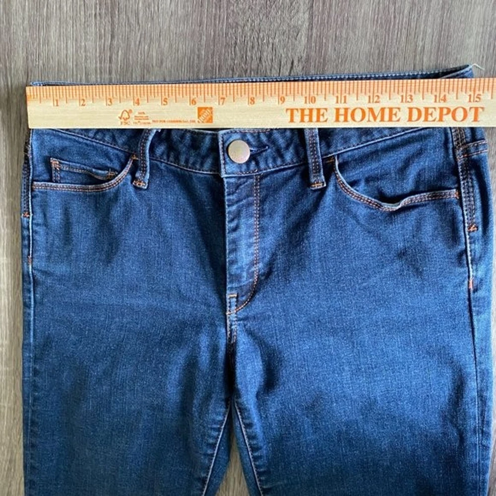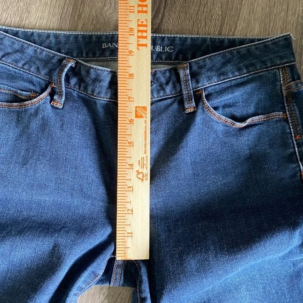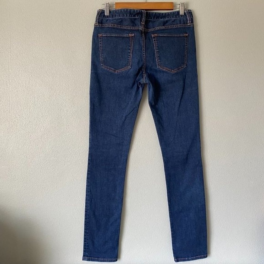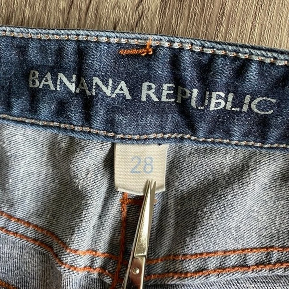 Banana Republic skinny jeans. Women's size 28. Sits lower on waist, fitted through hip and thigh. Skinny leg. Dark wash, super soft and stretchy denim material. 89% Cotton 8% Polyester 3% Spandex. Functional pockets on front and back. These Banana Republic dark blue skinny jeans with a vibrant orange stitching offer a most desirable silhouette perfect for any occasion. Beautiful quality and a superb cotton blend offers a great fit with enough stretch to complement any lifestyle. EUC, no visible flaws Tags: minimalist, industrial, normcore, practical, basic, solid, minimal, simple, modern, classy, classic, timeless, neutral, contemporary, everyday Please see all pictures for style, color, condition, & measurements & remember that colors can vary from screen to screen (which means the actual item may be lighter or darker than it appears on your device). Questions welcome before purchase. 5 Star Seller Fast Shipping Offers Welcome Bundle & SaveCLOTHING & FABRIC ITEMS: All pre-owned clothing and fabric items have been steam cleaned and/or washed per eBay standards.