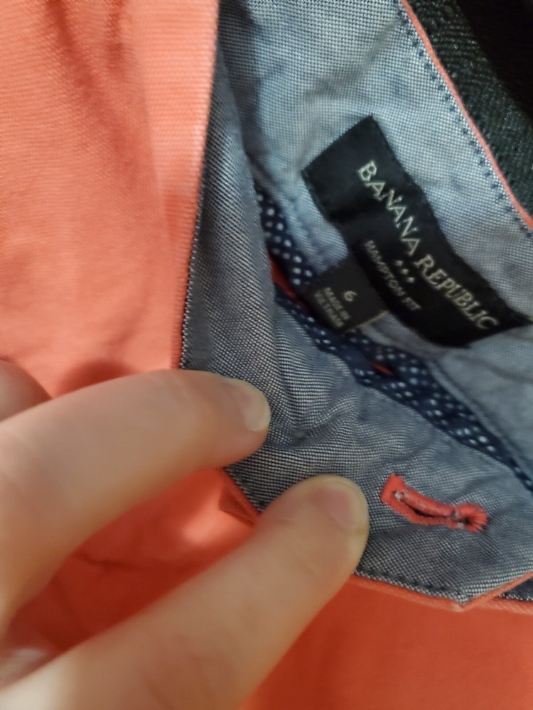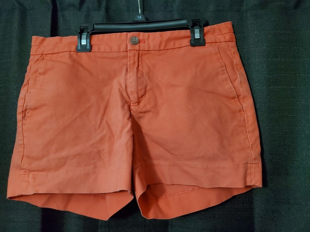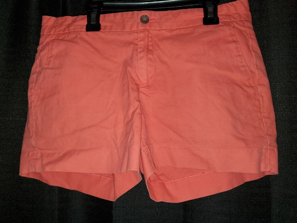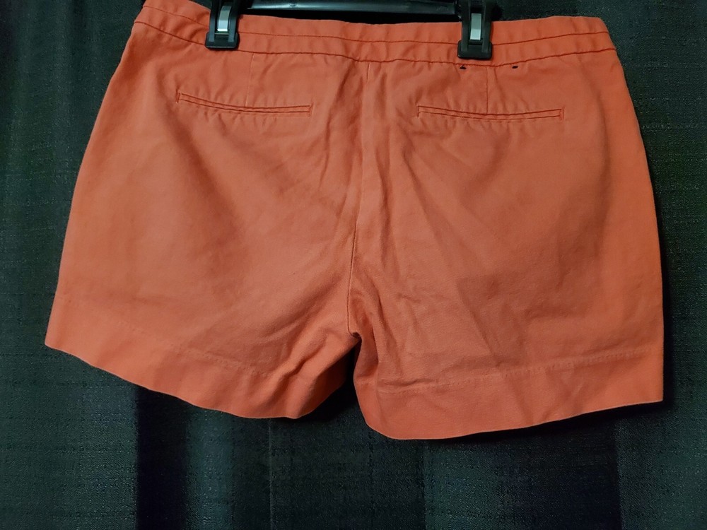 Elevate your summer wardrobe with these stylish Banana Republic coral orange chino shorts for women. The flat front and mid-rise design paired with the button closure and slash pockets create a classic yet modern look. These shorts are made from a comfortable blend of spandex and cotton in a twill fabric type, making them machine washable and easy to care for. The solid pattern and vibrant color make these shorts perfect for any occasion. With a 3-inch inseam, they are the ideal length for staying cool in the summer heat. These regular fit chino shorts are from a trusted brand and are sure to become a staple in your summer wardrobe. NO DEFECTS
