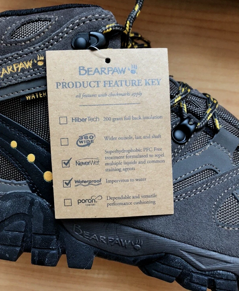 NEW NO BOX - 100% AUTHENTIC No known boot defects - NO ORIGINAL BOX Waterproof Hiker Boots Ships via USPS, UPS or FedEx Non-smoking home If there are any questions, please ask me. Thanks for your interest in the Bearpaw Brock Waterproof Mid Hiker Boots.