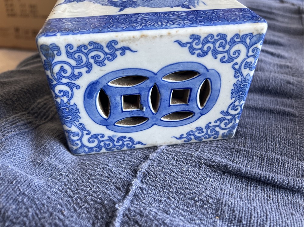 Antique Porcelain Chinese Pillow Signed . Dispatched with Royal Mail Signed 18.5 x 9 x 12.5 cm