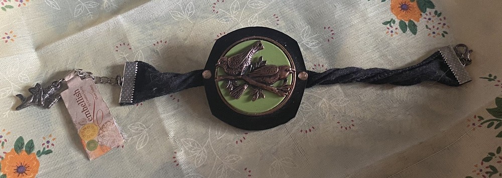 Add a touch of bohemian elegance to your jewelry collection with this stunning bracelet from Embellish by Creative Co-Op. Adorned with charming bird and angel motifs, this piece features a stunning combination of black, green, copper, and silver colors that will complement any outfit. The bracelet is made of high-quality materials such as enamel, resin, plastic, metal, cotton, and acrylic, and it boasts a lobster closure for a secure fit. This adjustable bracelet has a chain link design and measures 6-8 inches in length. It is also sizable to fit your wrist perfectly. The Boho Bird Bracelet is perfect for those who love art, birds, angels, and bohemian style. Get your hands on this beautiful piece today and elevate your fashion game!