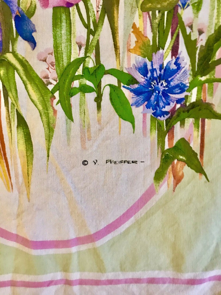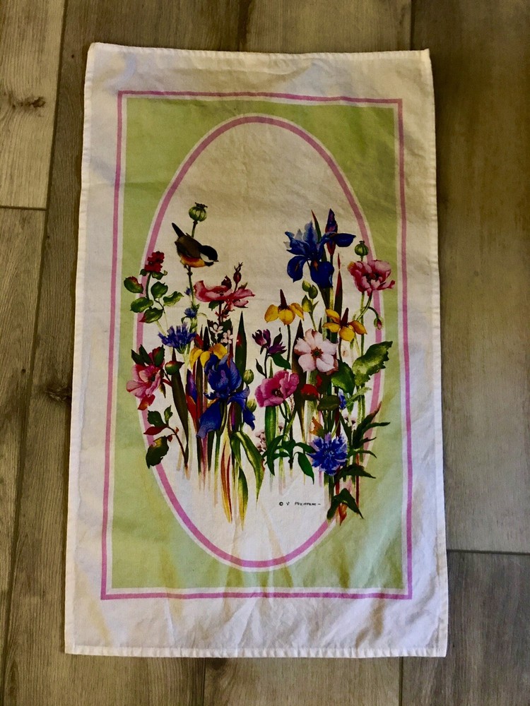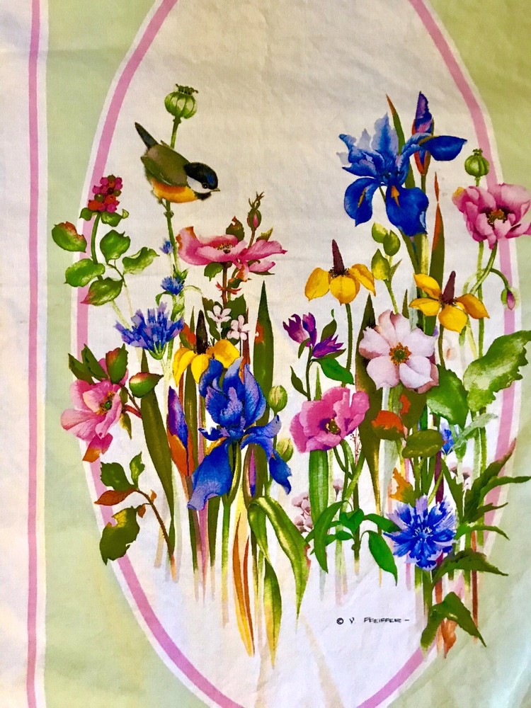 Beautiful, and 100% cotton floral and birds printed table runner by Creative Tea towel company. Bought in Montpelier Vermont. Measures approximately 30 inches long by 18 inches wide. In great condition! For your table, back of chair or to be hung’. Lovely spring time flowers and birds. Original price I paid was $129. Signed by the artist! LOWEST PRICE IS NOW! BUY NOW! PRICE WILL GO UP SOON
