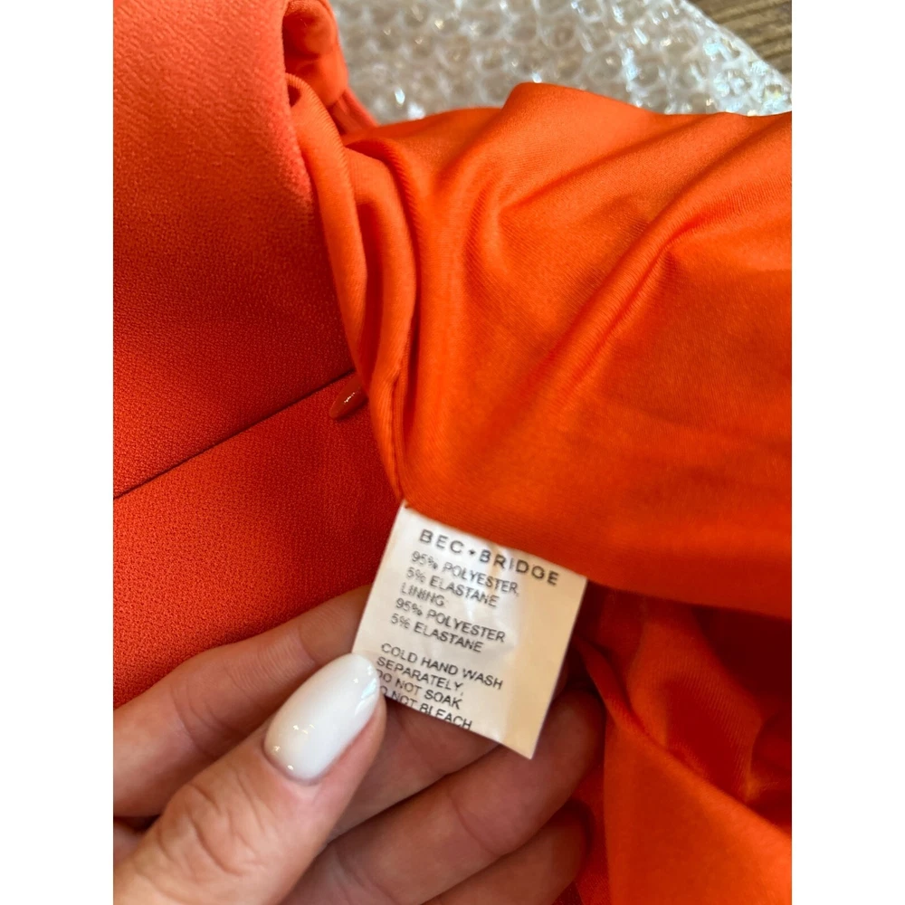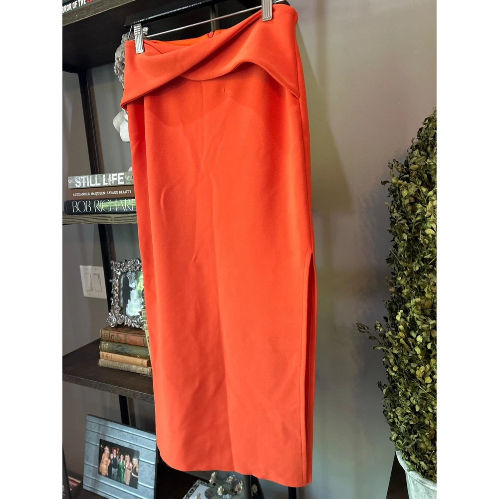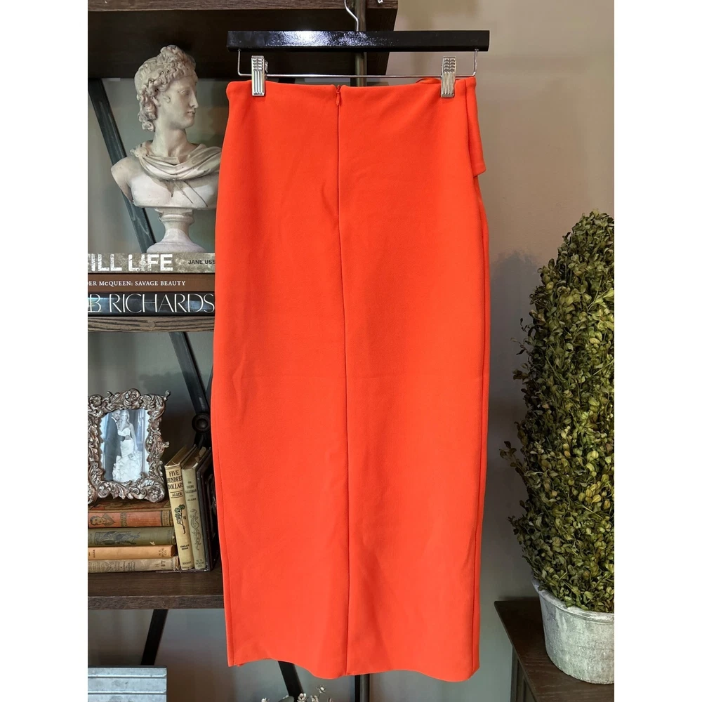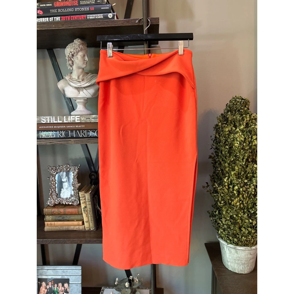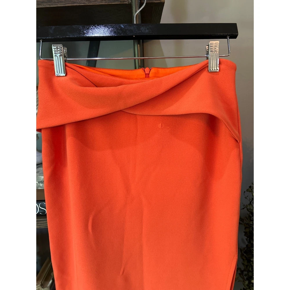 Bec+Bridge Clover Midi Skirt - Size US 6 Preowned Color: Flame MSRP: $190.00 Revolve Style No. BECA-WQ57 Manufacturer Style No. H21C-30101 NOTE: mark/imprint on fabric near waistband Hidden back zipper closure Twisted overlay detail at the waist Suiting stretch fabric with side seam slit Fully lined Hand wash Item not sold as a set 95% poly, 5% elastane Made in Australia tags: designer, bec + bridge, bec & bridge, midi, bodycon, matching set, chic, fashion, cocktail, party, travel, vacation Size: Womens 6 Condition: Pre-Owned Good