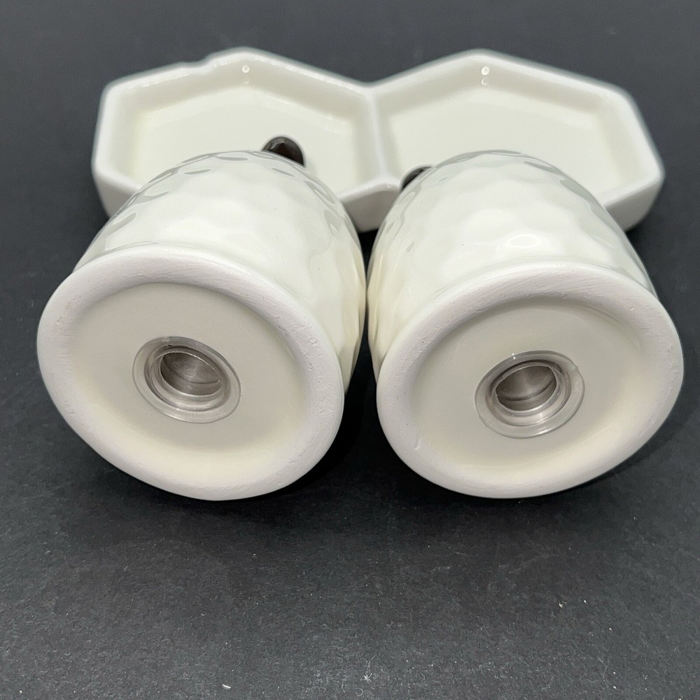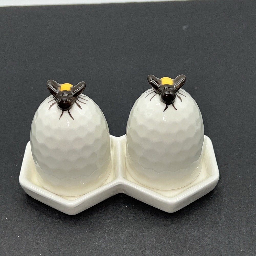 Add some charm to your dining table with this Bee Hive Salt and Pepper Shakers set. The shakers are made of high-quality ceramic material and come in a beautiful white color. The set includes a pepper shaker, a salt shaker, and a tray to keep them together. Perfect for all occasions, these round-shaped shakers have a unique style, which adds an element of elegance to your kitchen and home decor. The Creative Co-Op, Inc. brand ensures that you get nothing but the best. Made in China, this set of Bee Hive Salt and Pepper Shakers with Tray 3" is a must-have collectible for any kitchen enthusiast.