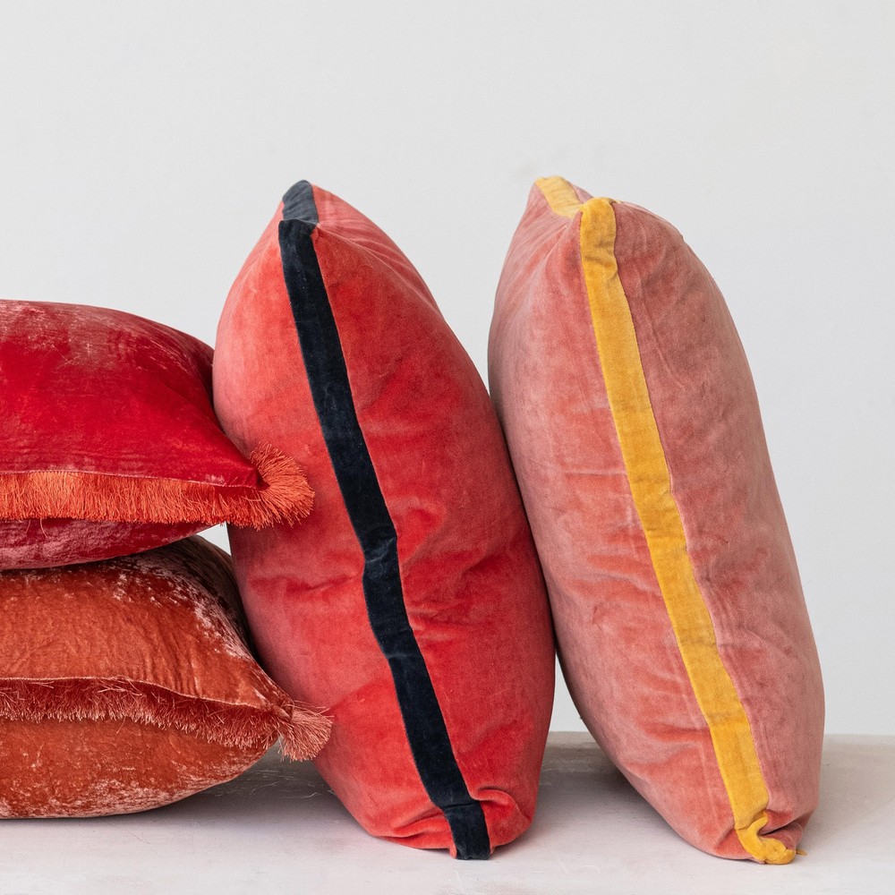This pillow is a stunning mix of bold colors and luxe texture! The rich berry and navy velvet feels so soft, and the art deco-inspired design adds a chic vintage touch. It’s the perfect pop of color for my couch—stylish yet comfy, with just the right amount of firmness. The contrasting gusset gives it a high-end look, and the quality is amazing. Love how it elevates my space effortlessly!