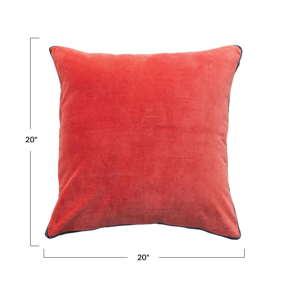This 20-inch Square Pillow is a blend of classic charm and modern sophistication, with its striking Berry and Navy color palette. The contrasting gusset adds a unique, dimensional flair that's reminiscent of the art deco era, while the cotton velvet material provides a soft, tactile experience. Perfect for an array of interior styles, from the boldness of glam to the subtlety of transitional design, it's a versatile piece that offers both visual impact and comfort. The polyester filling ensures the pillow retains its shape and offers a firm yet cozy support, making it a stylish and functional addition to any space. Whether it's the centerpiece of a sofa or an accent on a bed, this pillow is sure to make a statement. A touch of elegance, this pillow boasts a Berry and Navy contrasting gusset, capturing the essence of art deco style A glamorous addition to any setting, it's perfect for elevating a vintage or transitional decor with its bold, contrasting colors Polyester fill insert included A pure cotton velvet construction, offering a soft, premium texture that invites touch 20” L x 20” W