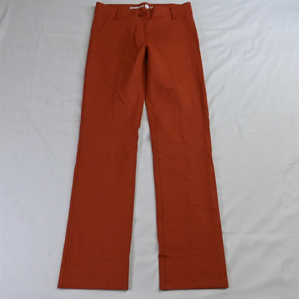 BetaBrand Pants - Size S orange ponte w0076: straight leg pull on dress pant yoga pants rayon / nylon / spandex blend Pristine, Like NEW Condition -- tagged long, but measure more like regular length! Measurements: Waist: 14.25 inches Rise: 8.75 inches Inseam: 7 inches Cuff Opening: 31.5 inches