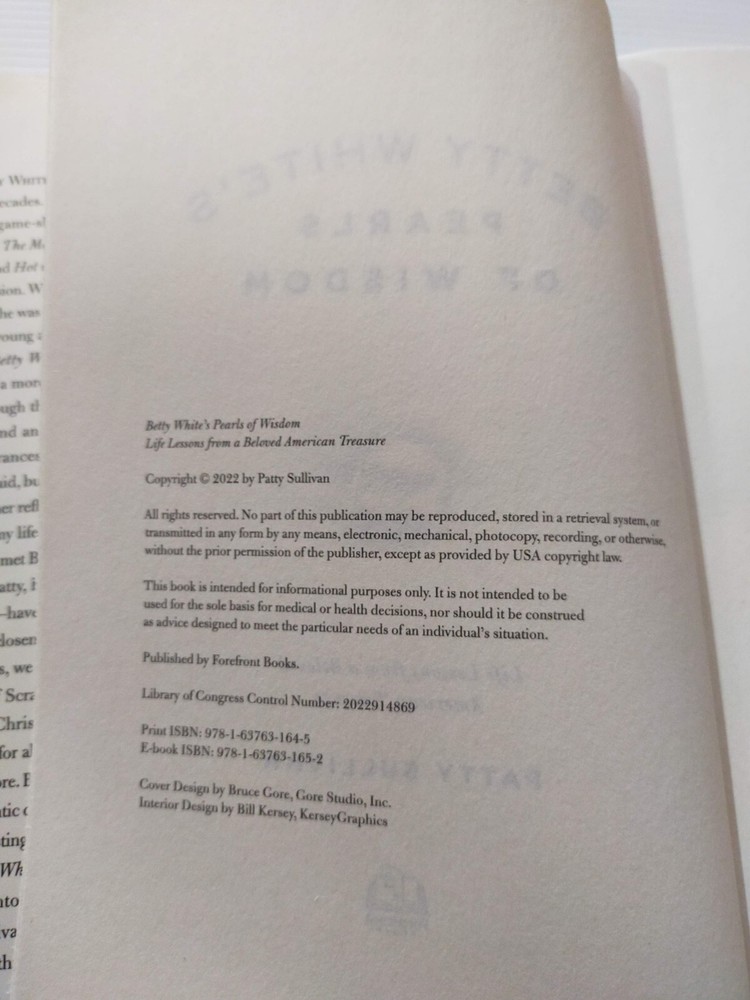 Betty White's Pearls of Wisdom by Patty Sullivan Life Lessons a Beloved Treasure. Book clean no marks....