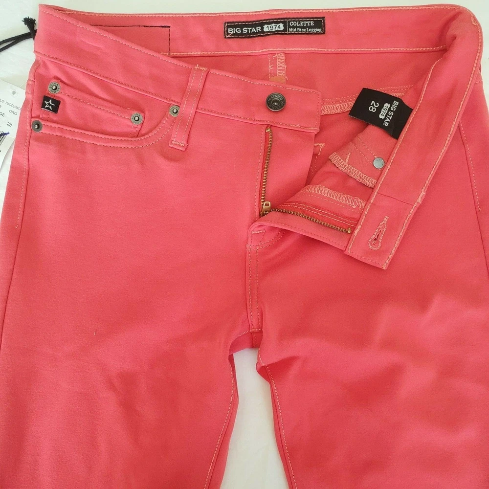 Big Star Buckle Womens Colette Mid Rise Jeggings in Orange Size 28 Retail Price: $98 Brand: Big Star Size: 28 Color: Orange Fabric: 65% Rayon, 32% Nylon, 3% Spandex Condition: New without all Tags Measurements : Waist: 30 In Seam: 28.75 Total length: 36 See photos for more details, you will receive actual item pictured above. Before purchasing or Bidding : Please ask any questions you may have, check all measurements, and review all photos before purchasing/bidding. Coloring : Please note the actual items color(s) may very slightly due to variations in lighting, monitors, phones, cameras, etc. I do my best to take great pictures in good lighting, trying my best to show the items true color. Please keep this in mind if you are wanting a specific shade of color in an item you are buying. Sizing Information: Measurements are taken with the garment lying flat; please note that it is still your responsibility to know your size in a particular brand. Returns are not allowed due to an item not fitting. If you need further sizing information, please feel free to contact us prior to purchasing, or bidding. Feedback: We leave positive feedback for all transactions once we know the item has been delivered and that you are pleased with the item. If you have concerns about an item once you have received it, please contact us immediately via Ebay and we will do everything we can to address your concerns. Our goal is 100% Customer Satisfaction. Payment: We only accept PayPal. Please note that all payments for items must be made within 48 hours. Shipping: All items get shipping within 24 hours of receiving payment, unless otherwise noted. Shipping days are Monday-Friday excluding holidays observed by the post office. The faster the payment the faster I can ship the item. Returns: Returns are accepted for 30 days as long as the item is returned in the same condition as received, this includes tags still attached if item is new with tags. Buyer will be responsible for ALL shipping costs even if item had free shipping, including the return shipping cost. Please check our other listings! We have more great finds every day! Thanks for looking!