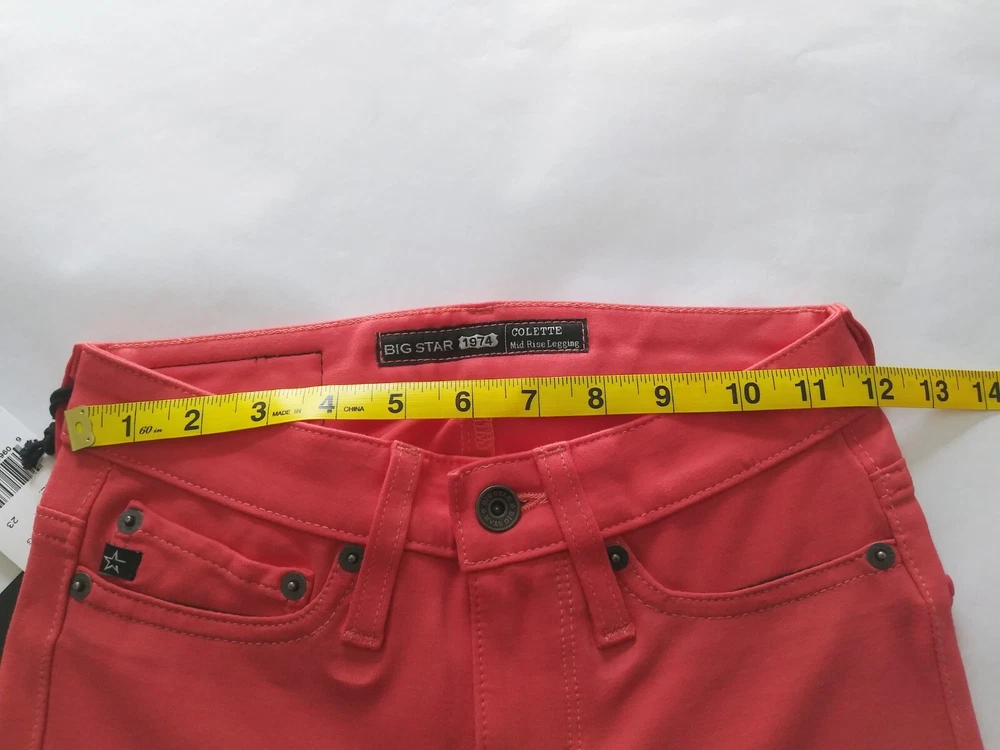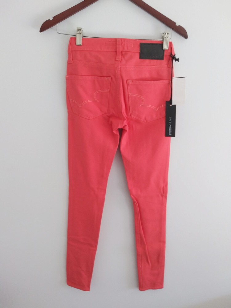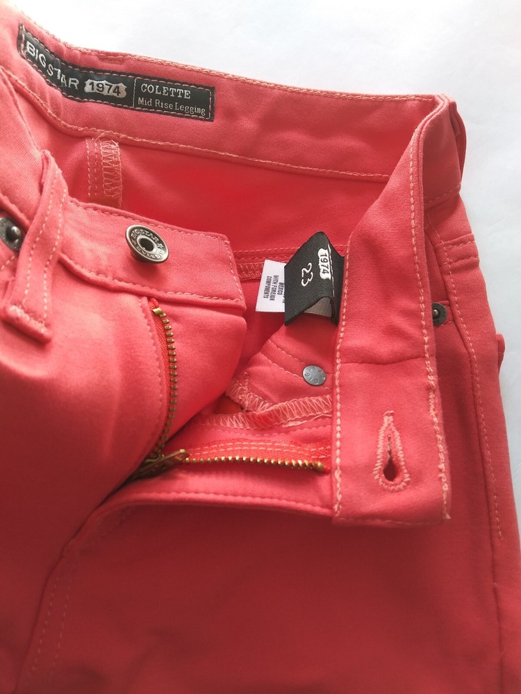 Big Star Colette Mid-Rise Jeans Size 23 Skinny Stretch Legging Red Orange. Faux front pockets, 2 regular back pockets...