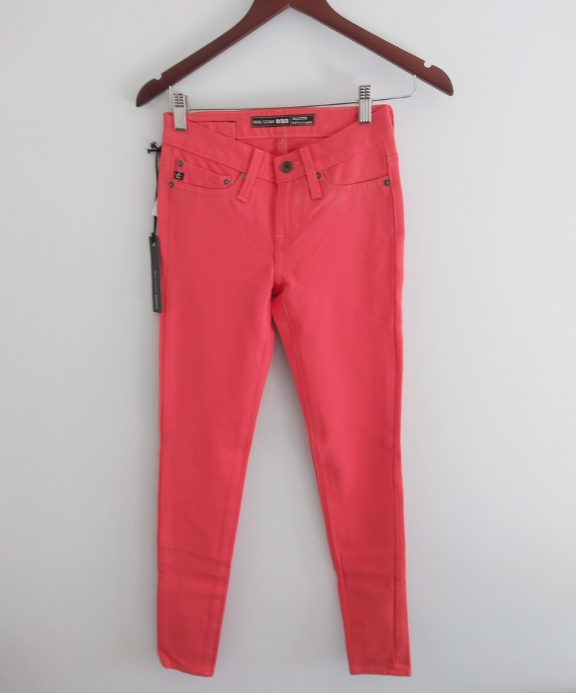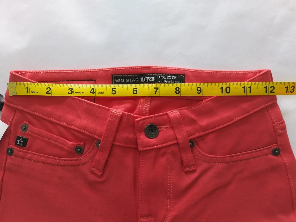 Big Star Colette Mid-Rise Jeans Size 24 Skinny Stretch Legging Red Orange. Faux front pockets, 2 regular back pockets...