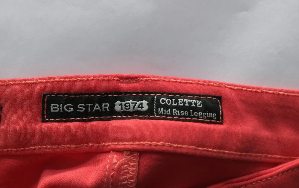 Big Star Colette Mid-Rise Jeans Size 24 Skinny Stretch Legging Red Orange. Faux front pockets, 2 regular back pockets