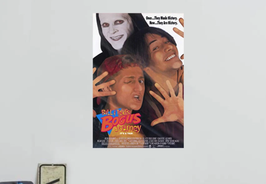 Absolutely love this vibrant, high-quality reprint poster—captures the wild, nostalgic vibe of Bill & Ted’s Bogus Journey perfectly! The colors pop, the details are crisp, and it’s a must-have for fans of Keanu Reeves and Alex Winter’s hilarious sci-fi adventure. Great for decorating any room with a fun, retro touch. No regrets!