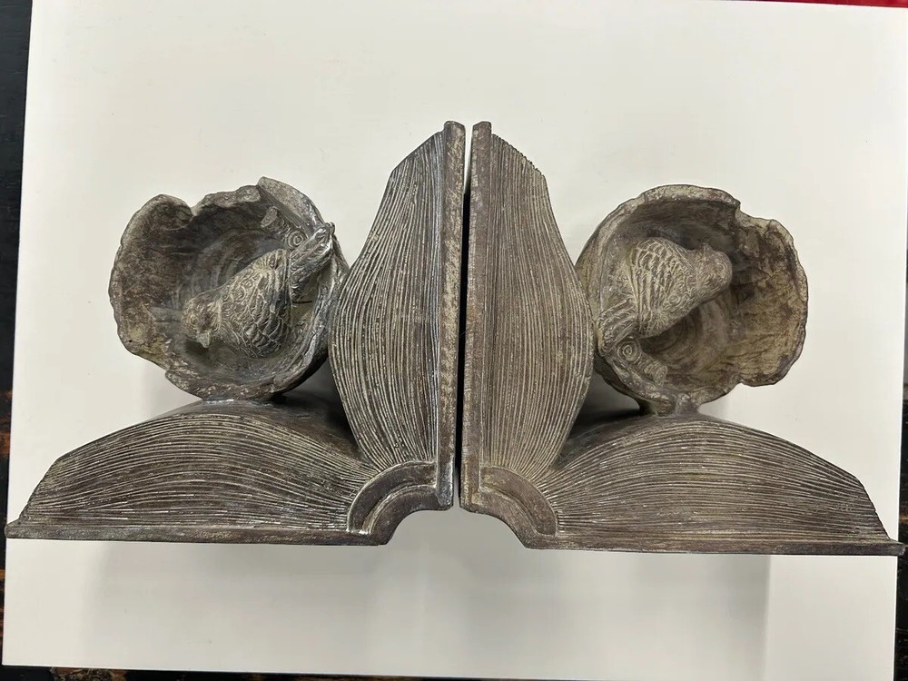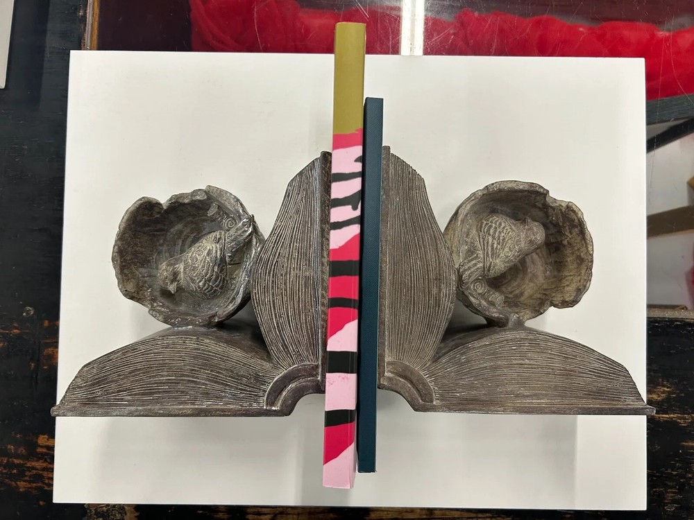 Add a touch of nature to your bookshelf with these charming antique-finished bookends. Crafted from high-quality resin, these bookends feature a pair of birds perched on books, making them a perfect gift for book lovers. The intricate attention to detail and the creative design of these bookends make them a great addition to any home decor.