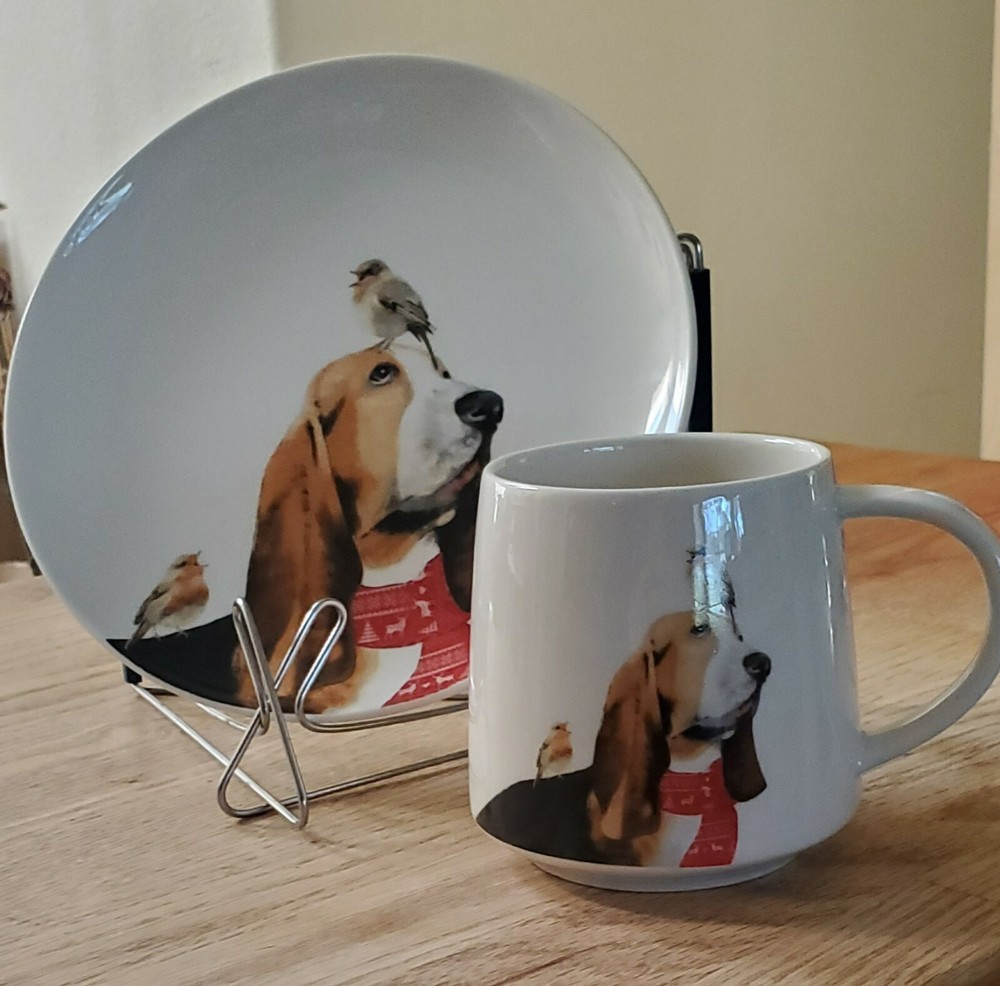This two-piece set from Creative Co-Op features a charming animal print pattern with birds and a dog, perfect for the holiday season. The round white stoneware plate has a width of 6 inches and is accompanied by a 16 oz coffee mug, suitable for both hot and cold beverages. The set includes care instructions and is machine washable and microwaveable. Ideal for collectors, this mug and plate set can be used for daily use or for special occasions. Made in China, it will add a touch of whimsy to any kitchen or home decor.