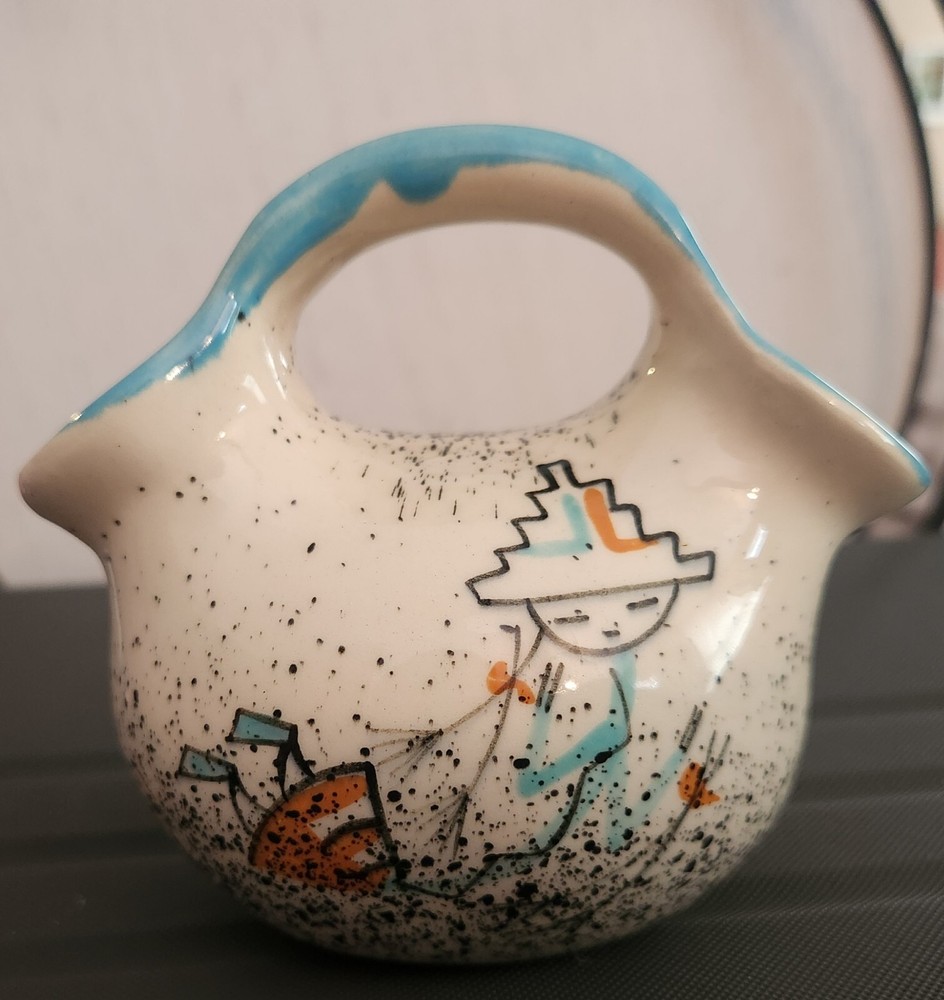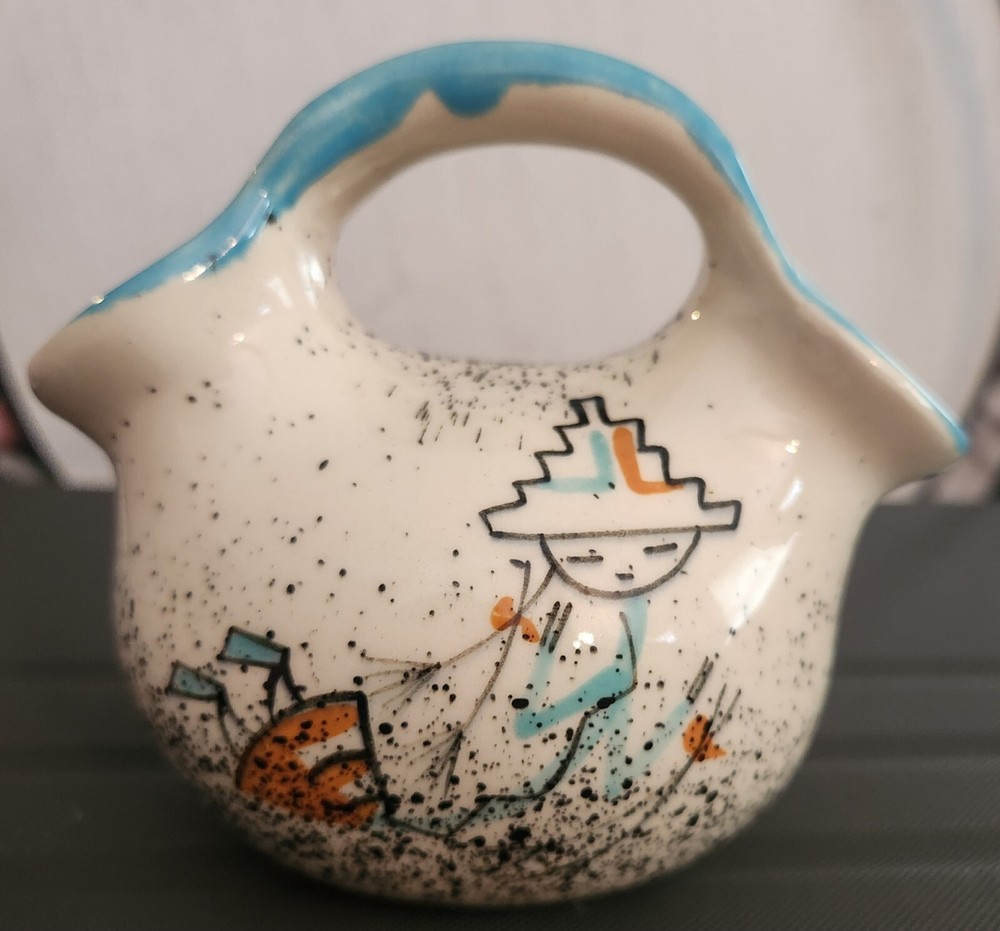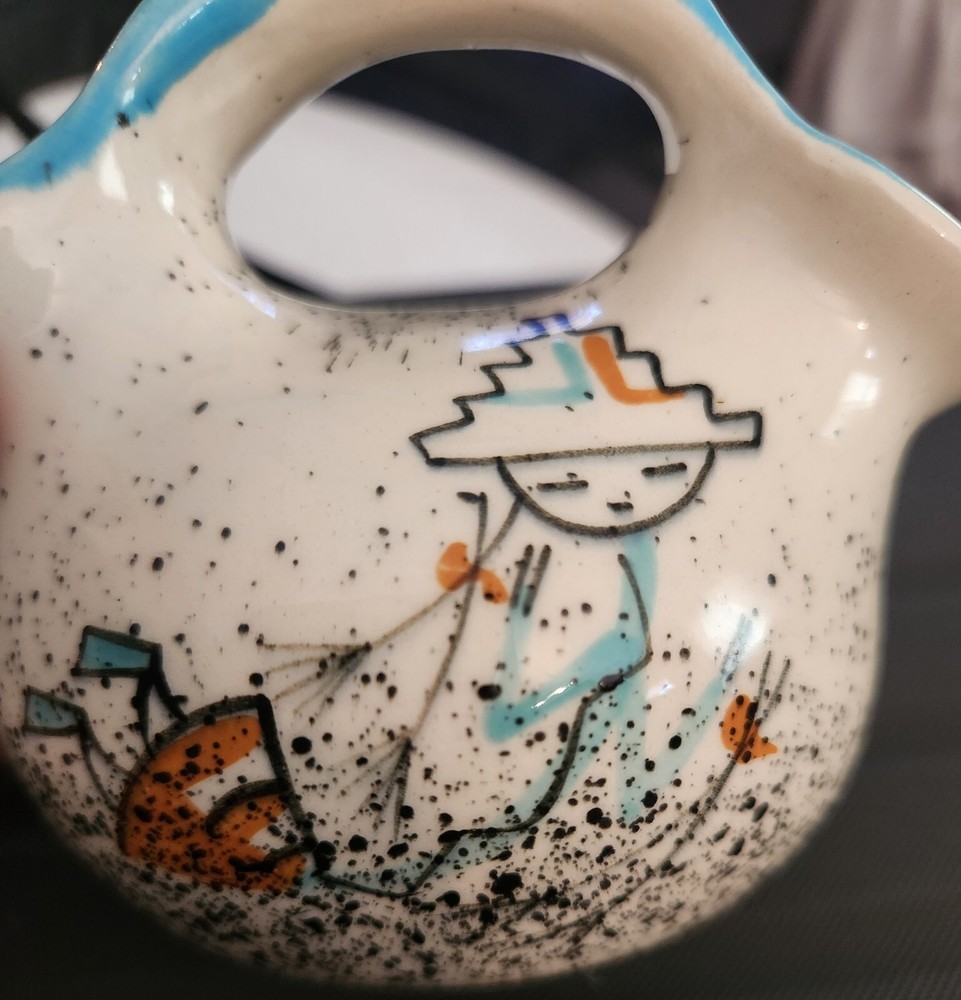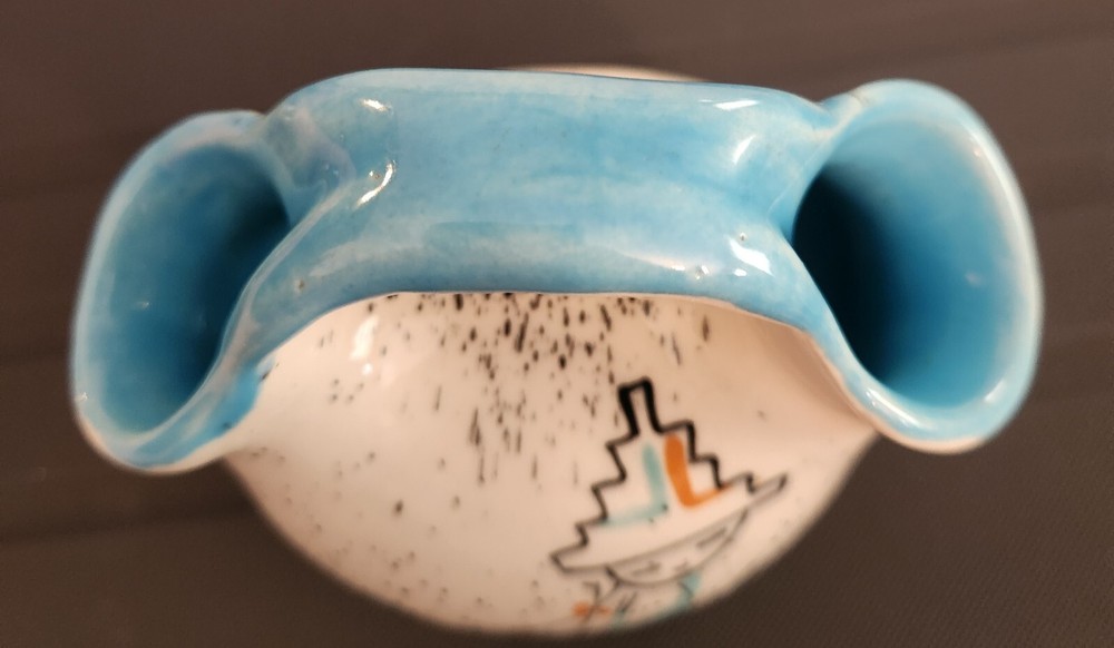 Very unique small double vase in good condition! Vibrant pattern with beautiful colors...