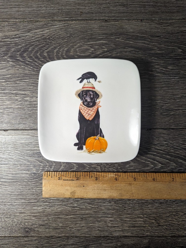 Black Lab Labrador Dog Ceramic Square Plate Trinket Dish 5” X 5" Creative Co-op. Excellent condition, no issues...