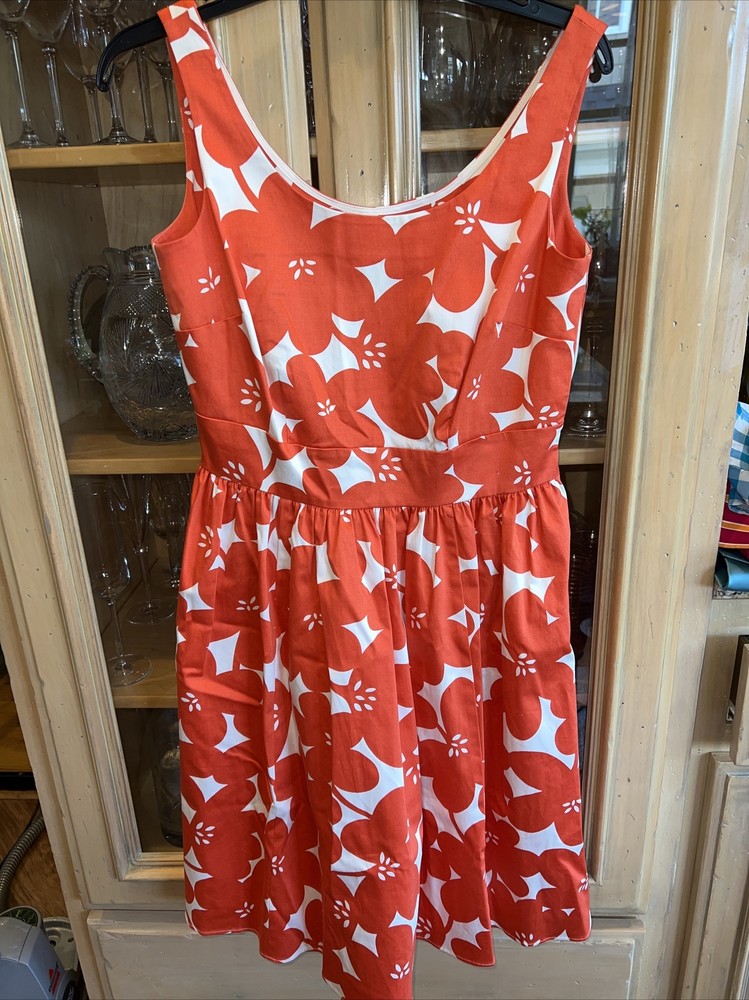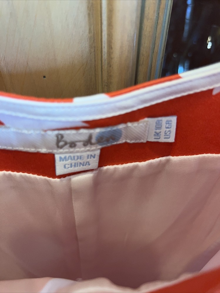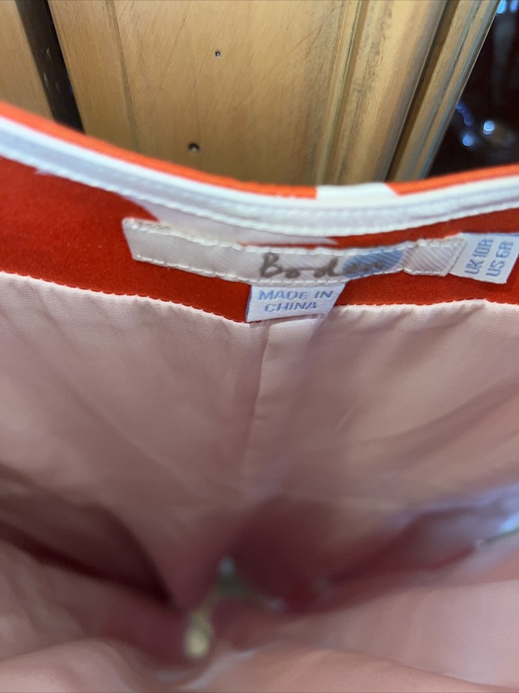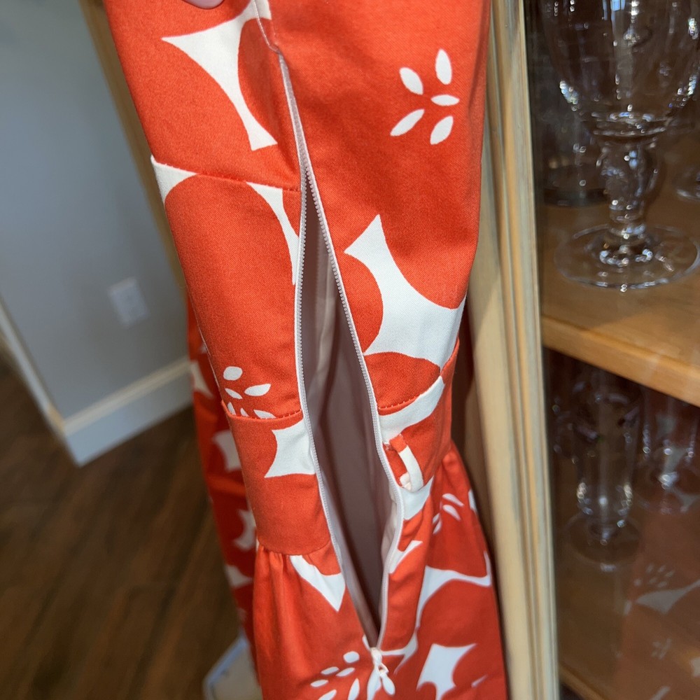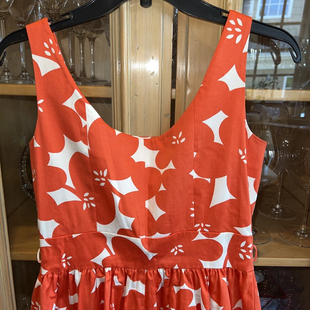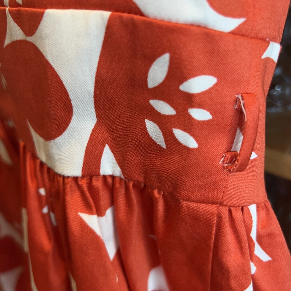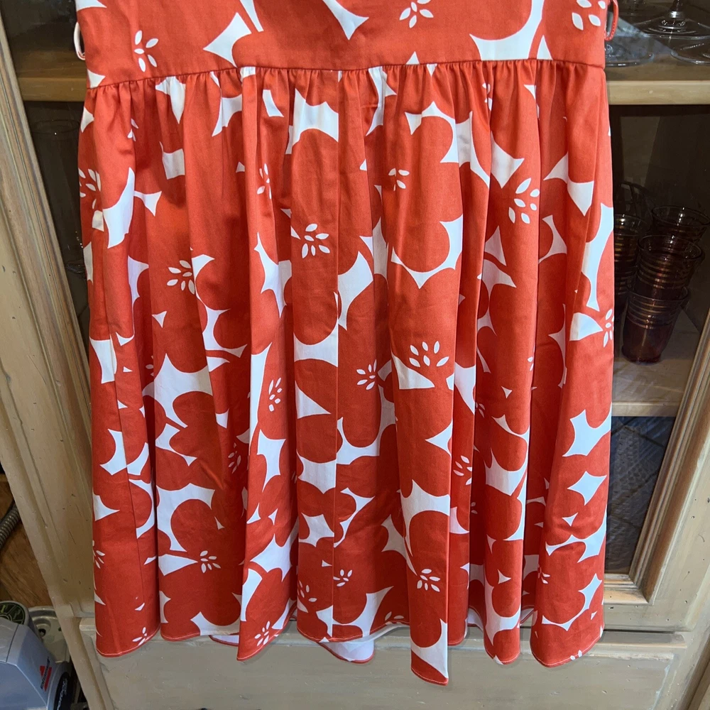Boden 6 sundress gorgeous orange floral. Substantial satiny cotton twill and it is Fully lined, skirt has a polyester jersey liner which hangs. I do not have the belt but would imagine a nice white or orange ribbon tied in a bow would be just perfect for this dress and probably was what it originally had. Biden always is made with such high quality construction and is designed to be a classic you will enjoy for many years. Gorgeous fitted bodice. Perfect for a cruise or trip to Italy 🇮🇹 or to look your best at. Staycation! Bust 35 Waist measurement 29” Shoulder to hem of skirt length 37” Straps are 1.25” at top