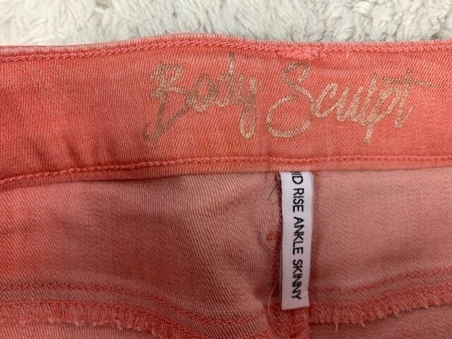 Body Sculpt Size 1 25 Womens Jeans Light Orange Mid Rise Ankle Skinny Stretch Tag Size: 1 25 Measured: Waist Across: 13 inches Rise: 7.5 inches Inseam: 26 inches Condition: Pre-Owned Flaws: None noted Fabric Content: 44%Cotton/32%Poly/22%Rayon/2%Spandex SKU# B-128-8 All items have been cleaned before being packed for sale.