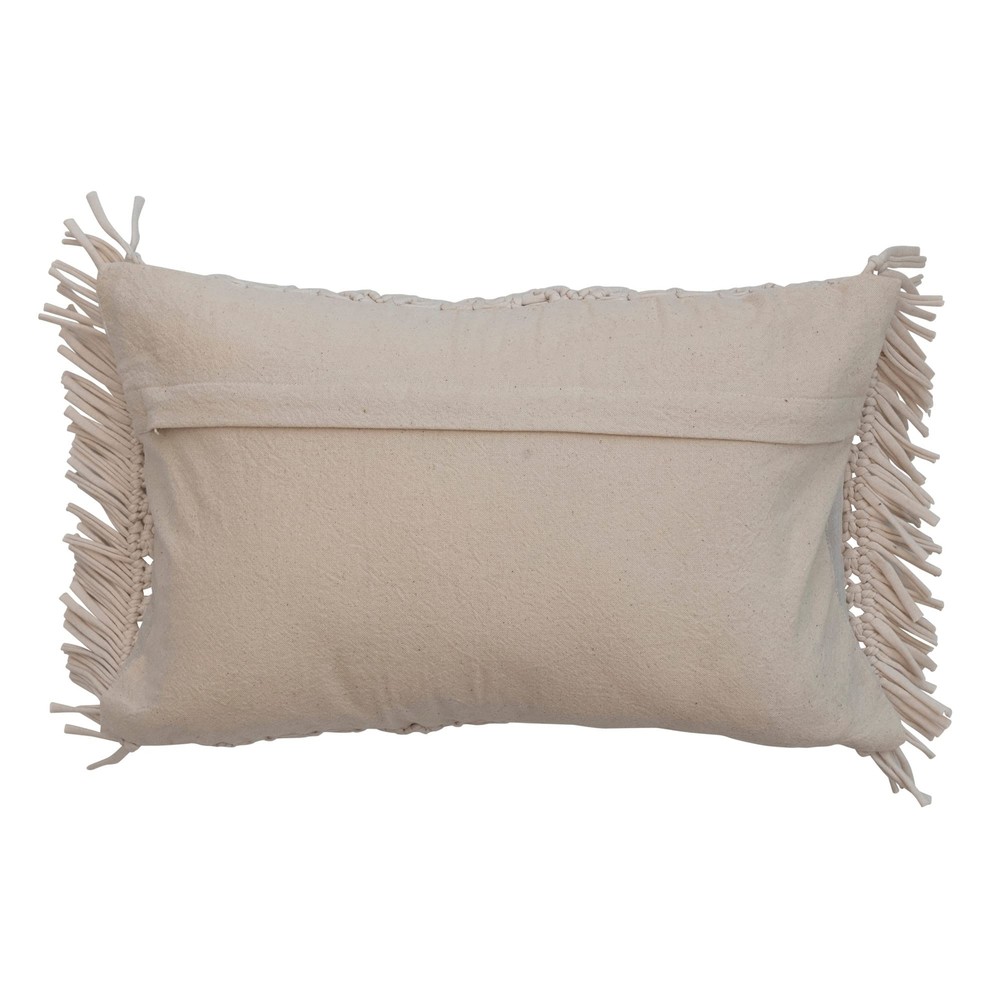 Our thoughtfully curated collection of throw pillows showcases a wide array of lush woven textures, prints, embroidery, and silhouettes to create the picture perfect nook. Explore a variety of plush accents to transform a house into a home including throw pillows, lumbar pillows, bolster pillows, down and polyfill inserts, and so much more. Choose from a vast array of materials from supple velvet and handwoven cotton to embroidered wool and textural boucle, and styles from mid-century modern and classic farmhouse to contemporary boho and vintage glam. Add a dash of relaxation and sophistication to a lounge space or bedroom to curate a warm and welcoming ambiance that is guaranteed to impress. This boho lumbar pillow showcases intricately handwoven cotton macramé construction finished with decorative fringe Includes polyfill insert Machine Wash Cold, Gentle Cycle, Do Not Bleach, Tumble Dry Low, Warm Iron If Needed Made from cotton 20 inches L x 12 inches W x 0.25 inches H