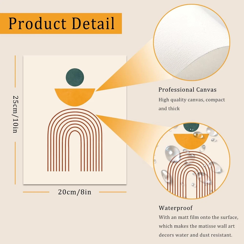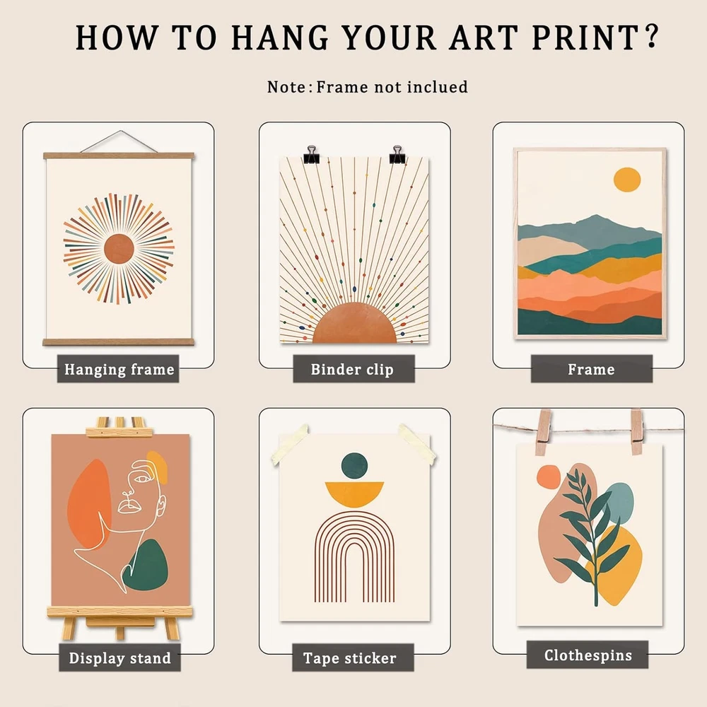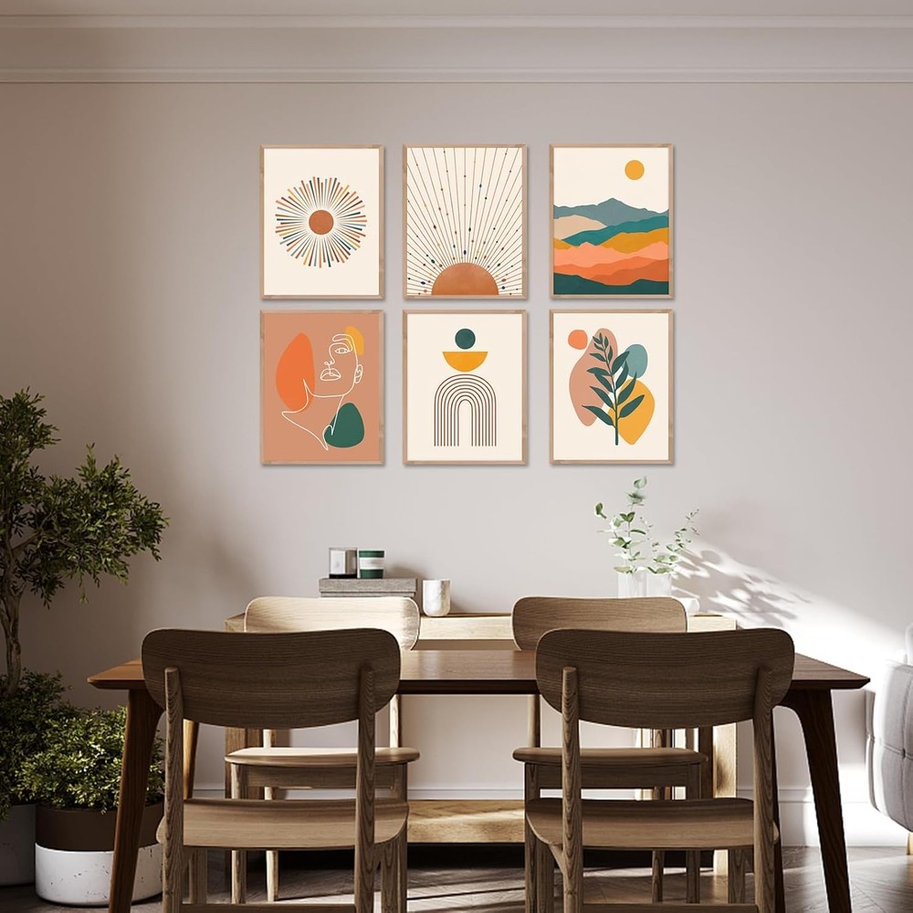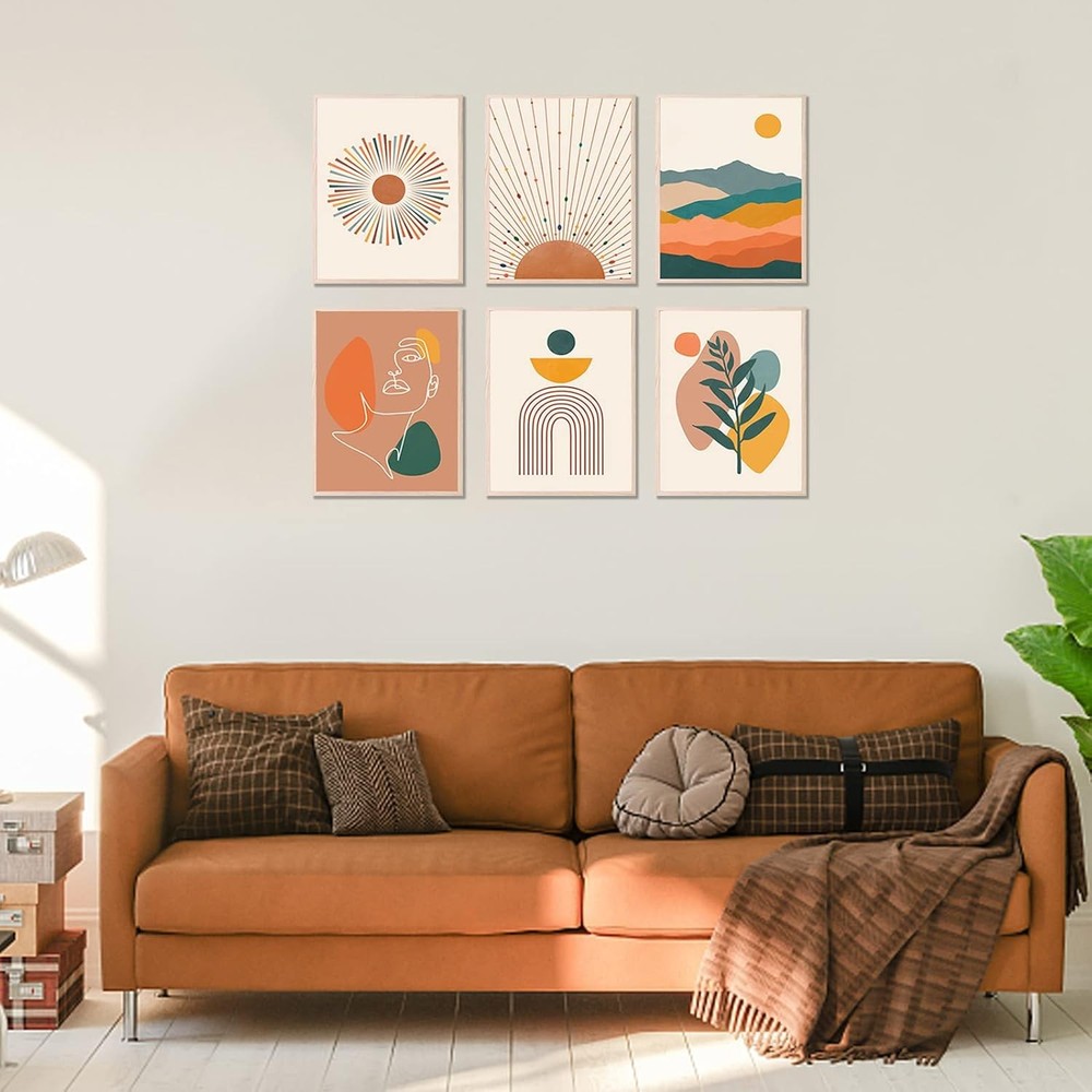 Boho Prints, Wall Art, Orange Decor, Mid 8x10 inches, 6pcs-Boho 01 Product Details Product Dimensions: 10 x 8 x 0.2 inches Item Weight: 0.352 ounces Manufacturer: uniro Item model number: UN-Boho-01 Premium Quality Canvas Materials:Our Boho wall art prints are made of high-quality canvas and inks, which can ensure that these boho posters will not easy to fade and waterproof. The boho minimalist wall art is perfect for various home decor style, like boho, mid-century, neutral or modern. Boho Style Wall Art Decor: Minimalist Boho art paintings are composed of various patterns, such as palm leaf, Sunrise, mountain, desert, women face line, etc. The set of art wall prints complement existing Bohemian wall art decor or can be the new focal point in a room. If you like this style, then the Boho wall art prints and posters will deserve your choice. Perfect Choice for Your Home Decoration: The orange and beige boho prints are suitable for bathroom, bedroom, living Room, dining Room, teen girls room, office, gallery etc. And if you are looking for boho wall decor gift for your friends in special days,like housewarming, Christmas, birthday, anniversary, Valentine's Day, Mother's Day, Father's Day, graduation, it can be your best gift choice. How to Hang Your Wall Art Prints: The size of the boho room decor is 8x10inchx6pcs. These mid-century modern wall art pictures perfectly fit a standard 8” x 10” picture frame. You can also hang these boho paintings with Binder clip, Clothespins, or Tape sticker. Just decorate them with your favorite frames or other suitable ways to fit your home style. Boho Prints, Boho Wall Art, Orange Wall Decor, Mid Century Modern Wall Pictures Palm Leaf Sun Mountain Women Face Line Canvas Wall Painting, Minimalist Geometric Boho Wall Decor, Boho Posters for Living Room Bedroom Office | Unframed 8"x10"