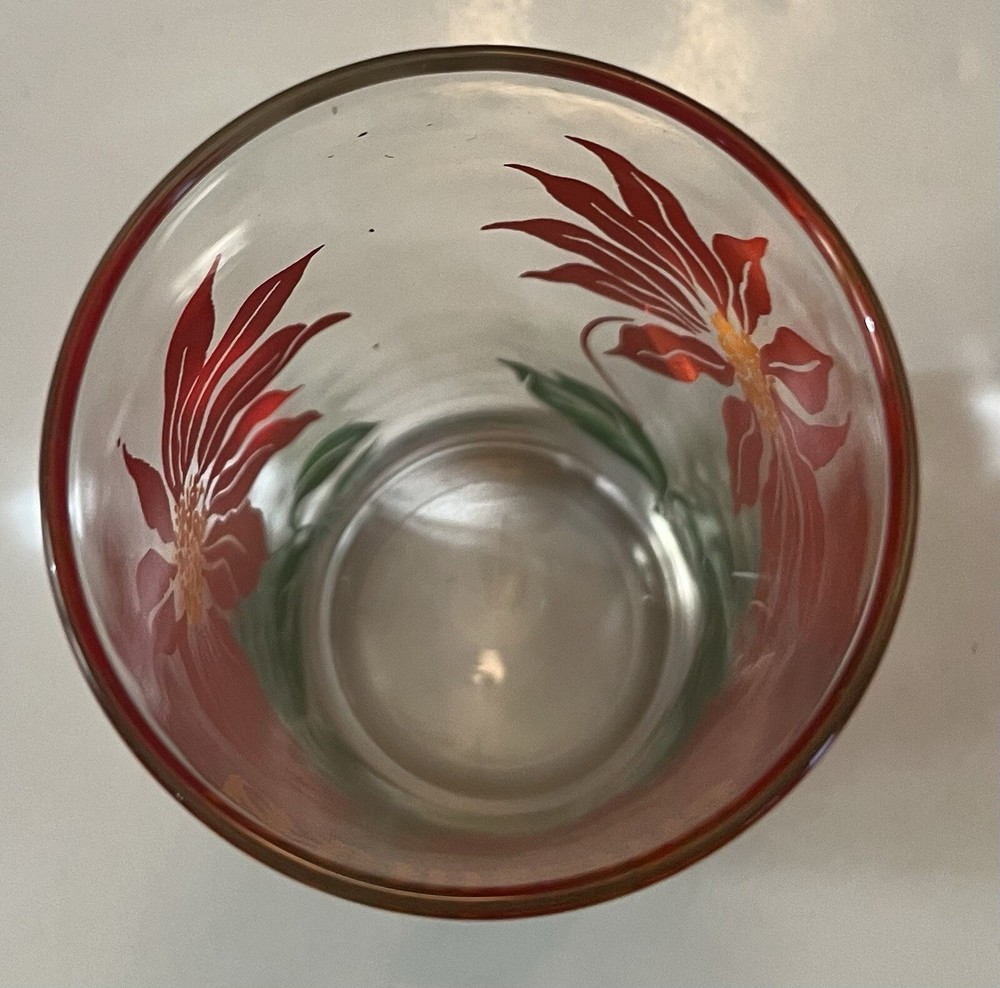Add a touch of mid-century modern charm to your drinkware collection with this Boscul Peanut Butter Glass Poinsettia Orange Lettering Tumbler Glass. The glass is beautifully crafted with a floral pattern and orange lettering that adds a pop of color to your table setting. Measuring 5 inches tall, this tumbler glass is perfect for sipping your favorite beverage. Made of high-quality glass material, this drinkware is durable and long-lasting. Ideal for any occasion, this Boscul tumbler glass is a must-have for any style-savvy home bar or kitchen.