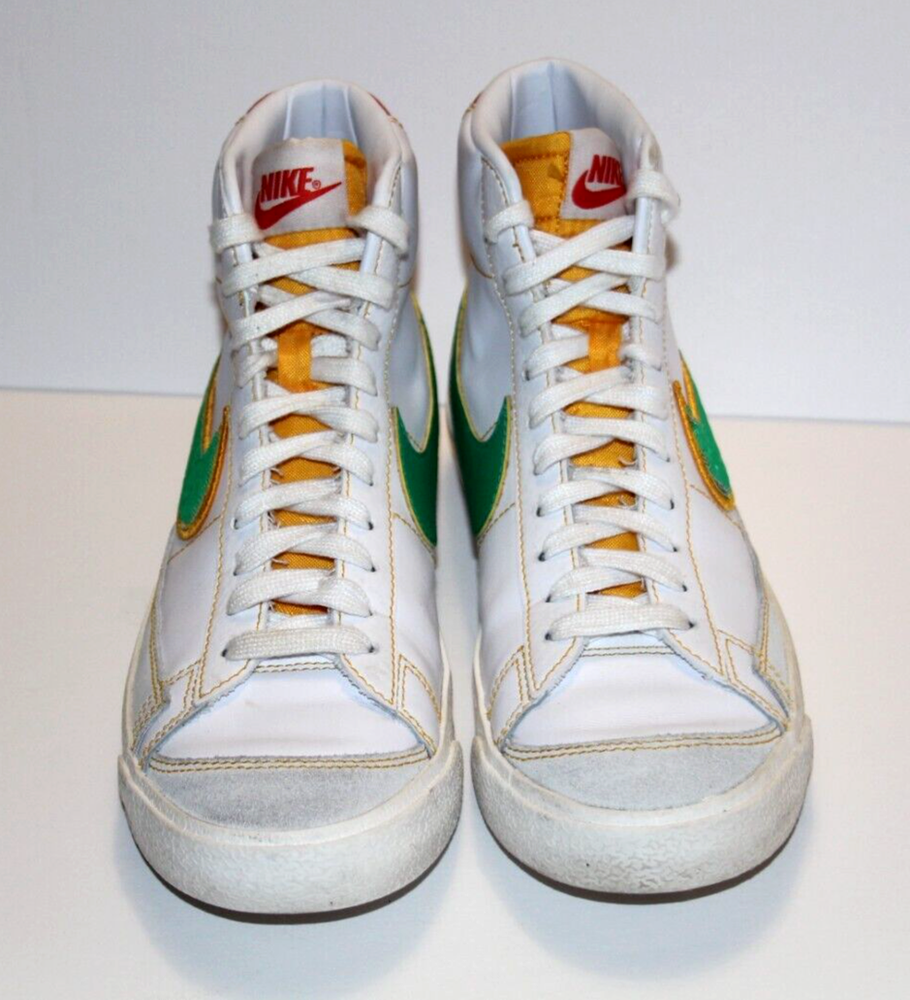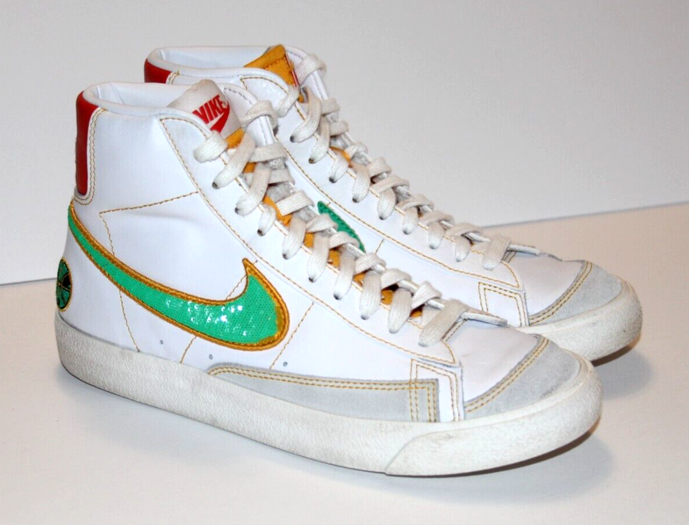 Boys' Nike Blazer Mid Roswell Rayguns DD9528-100 2020 Shoes White Size 6.5Y These Nike Blazer Mid Roswell Rayguns are in very nice condition and are ready to wear. They feature a synthetic and suede leather upper with a fancy sequin swoosh on both outside panels that change color when rubbed in a different direction (see last three photos) and a strong lacing system. The color palette is white, green, yellow, and red. The synthetic interior (no rips or tears) and foam foot beds will provide comfort and support. The rubber tread is in fantastic condition for excellent grip and traction. Model DD9528-100. Size 6.5Y Youth; 6 UK; 39. Very minimal signs of wear. How cool are these Nike Roswell Rayguns!? General Notes: Shoes pictured are actual pair shipped. Cleaning & Disinfecting: We disinfect and thoroughly but gently wipe down all pre-owned shoes, boots, and gloves. A gentle cleaning is recommended depending on the clothing, shoes, boots, etc. Shipping: We pack securely and ship out the next business day via USPS Priority Mail to US destinations. All items that ship via international shipping are handled by Ebay Global Shipping. Returns: We do accept returns but item must be returned in original condition (if new, then returned new not worn a few days). Smoke damage (cigarette, cigar, etc.) or damage from wear will result in no refund. WE DO NOT ACCEPT RETURNS FROM INTERNATIONAL BUYERS. Questions: WE WANT TO ENSURE YOU ARE GETTING EXACTLY WHAT YOU WANT SO PLEASE ASK ANY QUESTIONS BEFORE PURCHASING.
