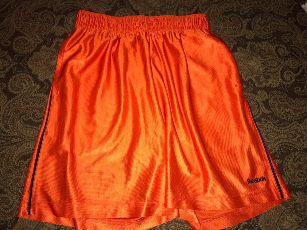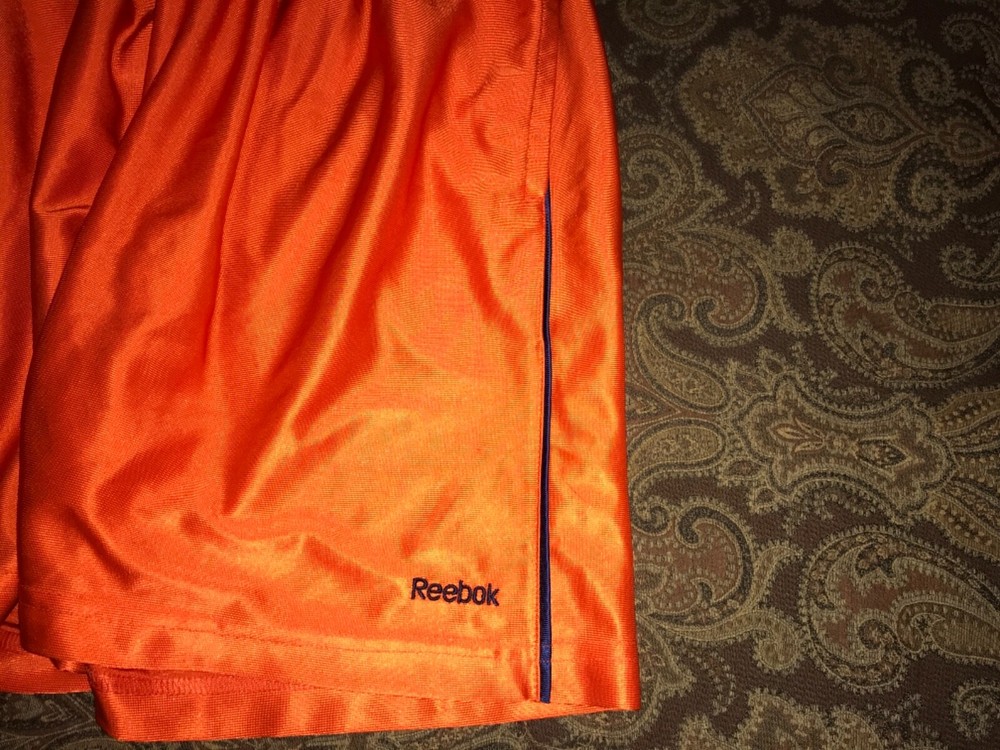 Boys Reebok Medium Orange Shorts NWOT. The inseam is 7”. These have never been worn, didn’t fit my son.