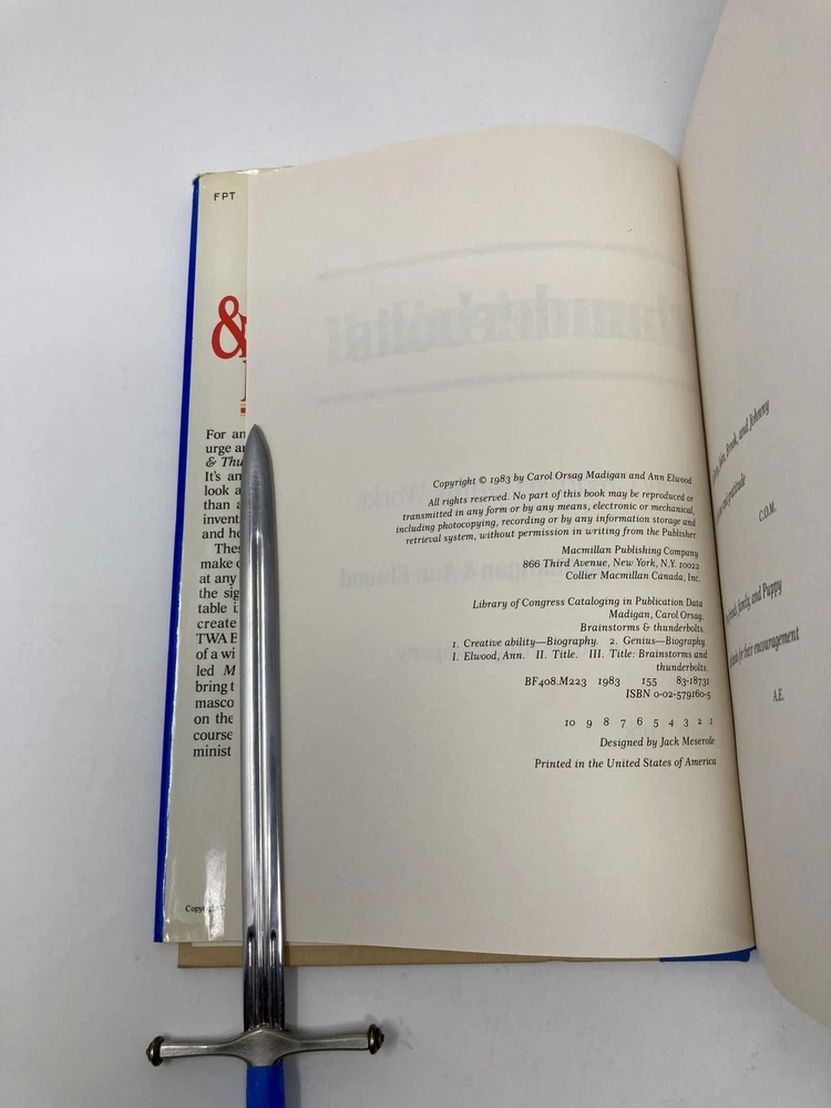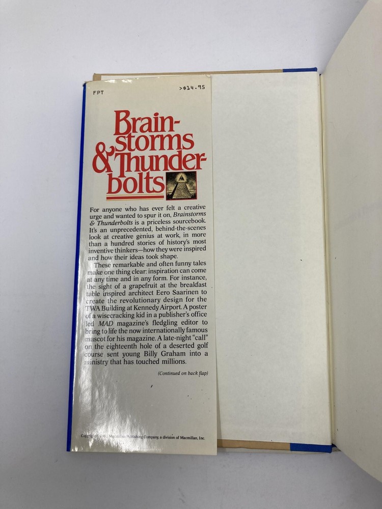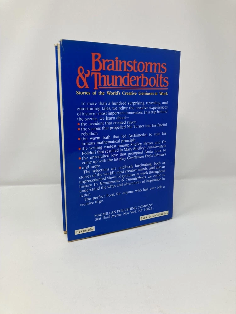 Brainstorms & Thunderbolts: How Creative Genius Works Author: Madigan, Carol Orsag Title: Brainstorms & Thunderbolts: How Creative Genius Works Publication: MacMillan Publishing Company, January 1983 Edition: First Edition Description: First Edition, First Printing. Not price-clipped ($14.95 price intact). Published by Macmillan, 1983. Octavo. Hardcover. Book is very good with previous owner name on front flyleaf. Dust jacket is very good. 100% positive feedback. 30 day money back guarantee. NEXT DAY SHIPPING! Excellent customer service. Please email with any questions or if you would like a photo. All books packed carefully and ship with free delivery confirmation/tracking. All books come with free bookmarks. Ships from Sag Harbor, New York. Seller ID: 194750 Subject: Essays We Buy Books! Collections - Libraries - Estates - Individual Titles. Message us if you have books to sell! This listing was created by Bibliopolis.