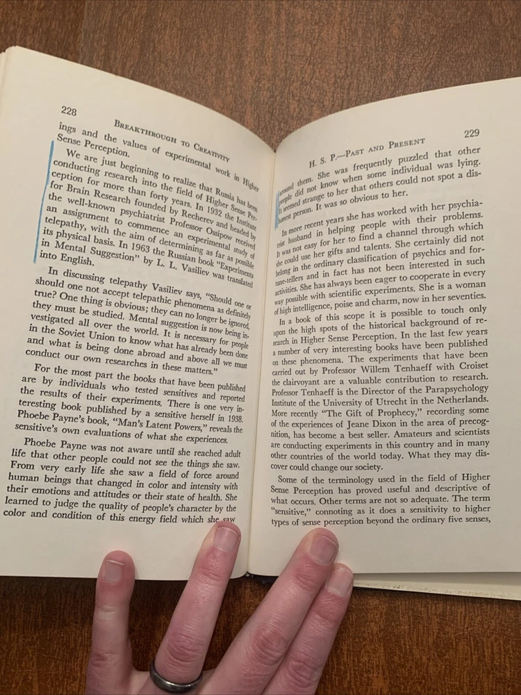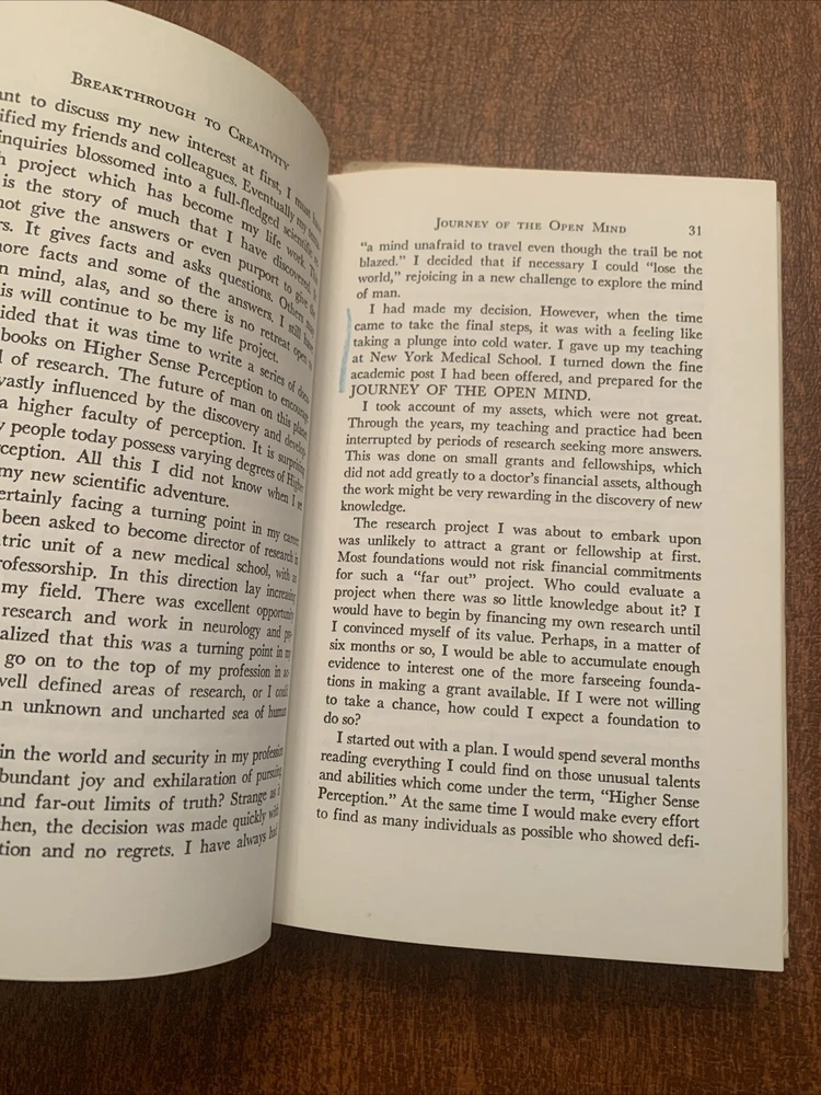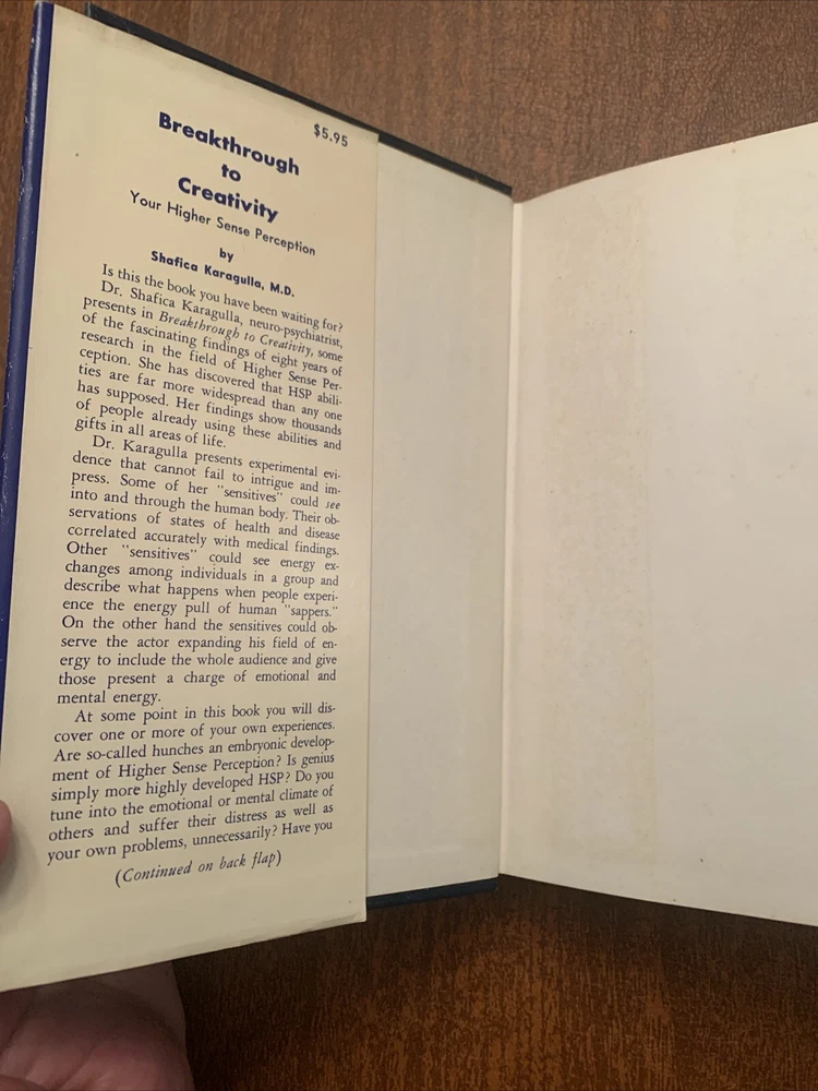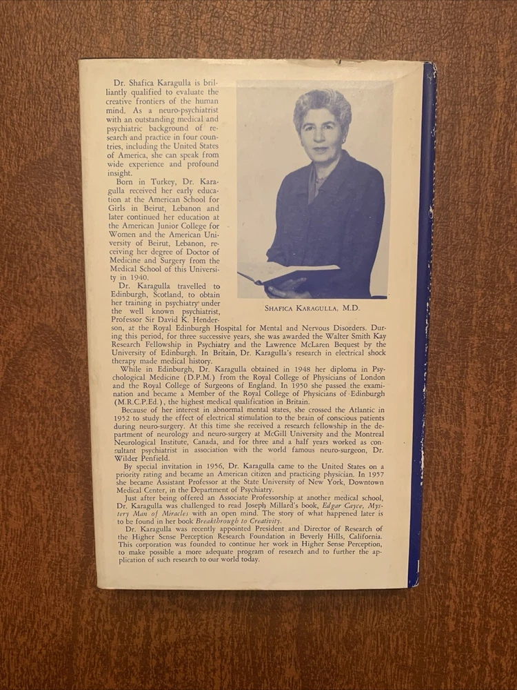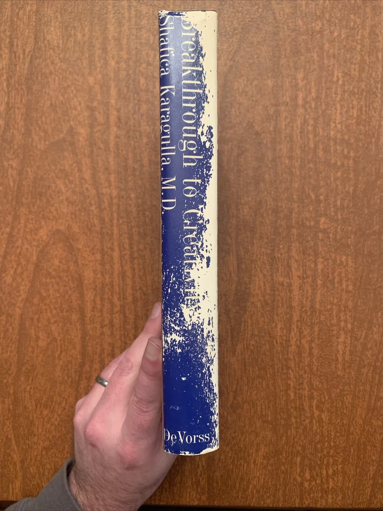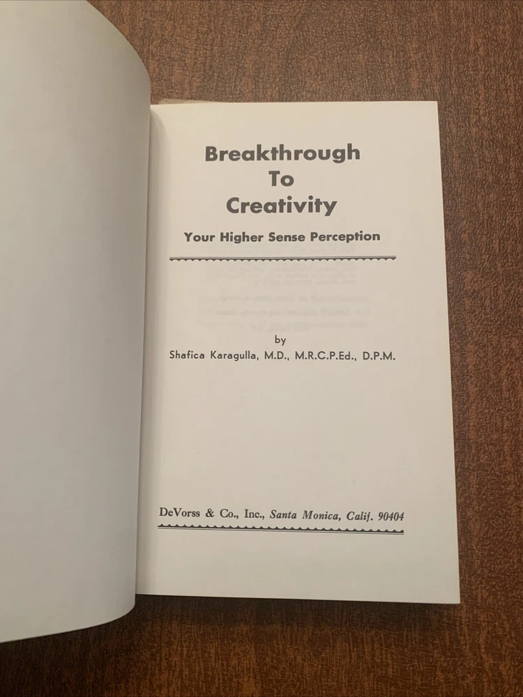 The product is a vintage hardcover book titled "Breakthrough to Creativity" by Shafica Karagulla, published in 1971 by Devorss & Company. It is a nonfiction novel in the genre of Body, Mind & Spirit, focusing on the topic of Parapsychology/Esp, including Clairvoyance, Precognition, and Telepathy. The book, intended for adults, weighs 14.4 oz and consists of 268 pages. It features a dust jacket and is written in English, making it a unique and intriguing exploration of higher senses and creativity. Pictures reflect condition! Dust jacket is worn and there is some highlighting
