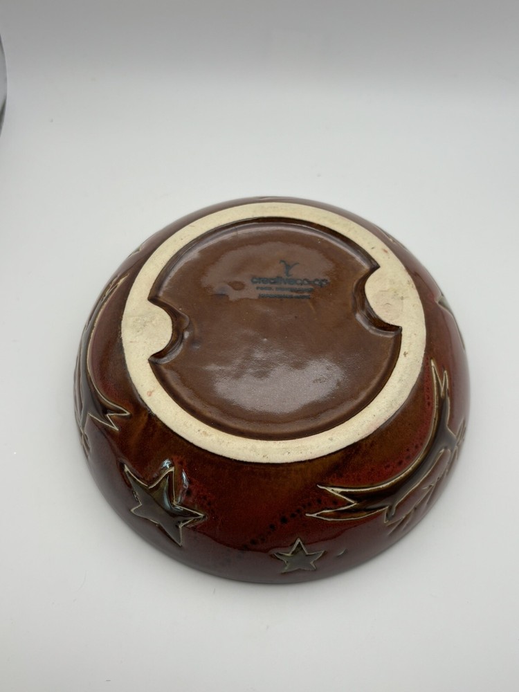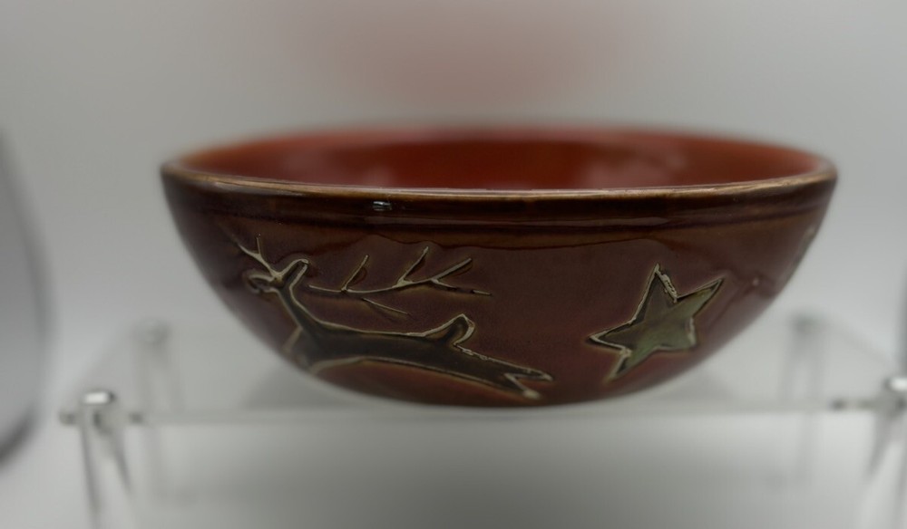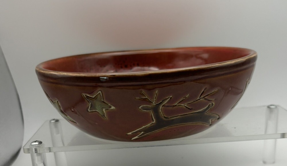 Brown Glazed Reindeer Christmas Glazed Creative Co-Op Bowl 6IN. Condition is Used. Shipped with USPS Ground Advantage....