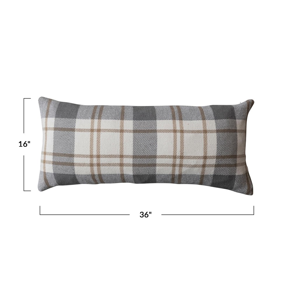 This brushed cotton flannel lumbar pillow features a traditional multicolor plaid design, bringing a sense of warmth and comfort to any setting. The soft brushed cotton flannel cover, combined with a chambray back, offers both style and coziness. Filled with polyester for resilience and support, this pillow is not just a decorative accent but also a comfortable addition to every home. Its generous size makes it an impactful addition, inviting relaxation and a homely feel to any living space. Whether it's gracing a couch or adding a rustic touch to a bed, this lumbar pillow is a testament to classic comfort and style. A cozy multicolor plaid pattern on brushed cotton flannel offers a classic and comforting aesthetic An ideal choice for adding a touch of timeless charm to any room, this pillow complements various decor styles A plush polyester fill gives this pillow a full, firm shape A cover made from pure brushed cotton flannel pairs with a soft polyester fill for ultimate comfort and support 36” L x 12” H