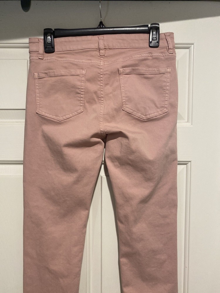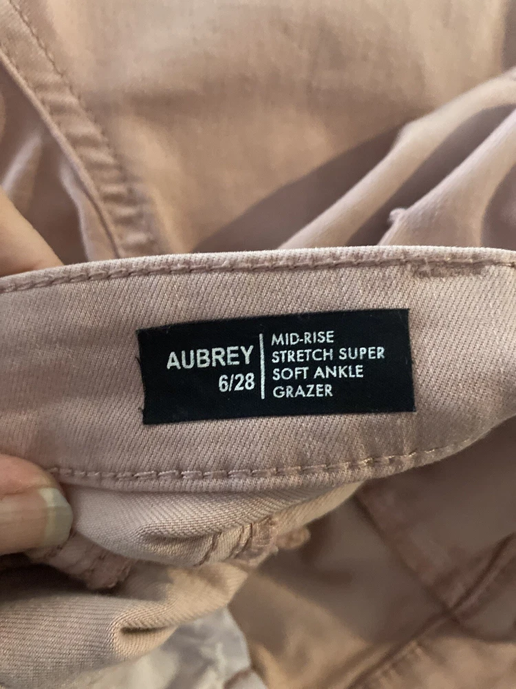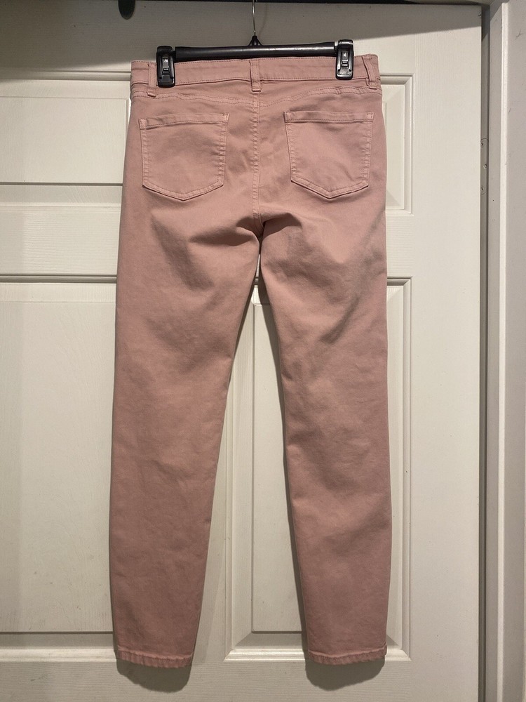 These jeans are so comfortable and flattering! The stretchy fabric fits perfectly, and the mid-rise sits just right. The ankle length is ideal for showing off shoes, and the peach color is soft and stylish. Great quality and true to size—definitely a new favorite in my wardrobe!