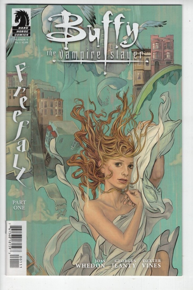 B uffy the Vampire Slayer #1 comic book "Freefall" Part One Featuring the Buffy the Vampire Slayer #1 cover A comic book . This comic book was published by Dark Horse Comics in 2011. Cover by Steve Morris Freefall: Part 1 - Joss Whedon (W), Andrew Chambliss (W), Georges Jeanty (P), Dexter Vines (I) Season 8 ended with a bang when Buffy cut the world off from the hell dimensions and all supernatural influence. Great, right? Except Buffy has left her best friend, Willow, powerless, and ended the long line of vampire slayers, leaving her hated by the hundreds of girls who recently stood behind her. Newly relocated to San Francisco, Buffy can count on a fresh start, and focus on what she's good at-slaying. Cover price $2.99. This comic book is in VERY FINE / NEAR MINT collector’s condition, and comes in a plastic comic sleeve with an acid-free backing board. An essential for any BUFFY THE VAMPIRE SLAYER, ANGEL, FIREFLY, SERENITY, JOSS WHEDON fan or collector. Please check out our other BUFFY COMIC BOOK AUCTIONS . We will combine shipping on multiple winning items. Shipping is via USPS MAIL and includes insurance within the United States.